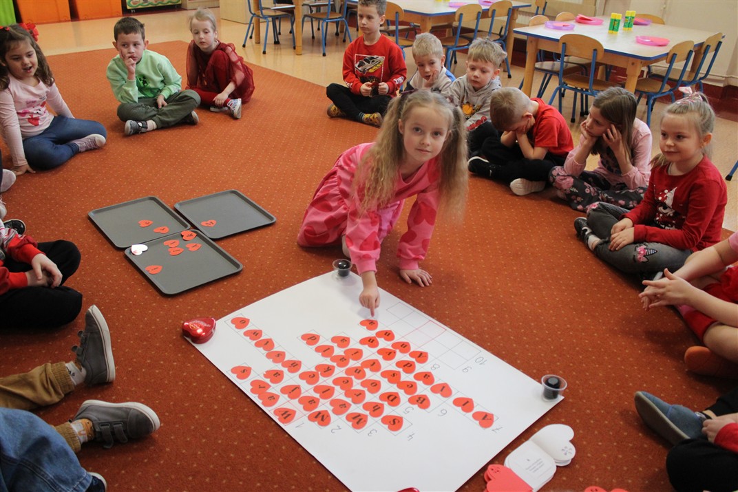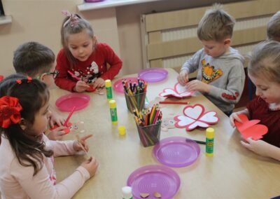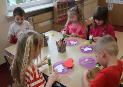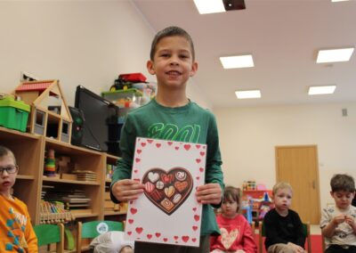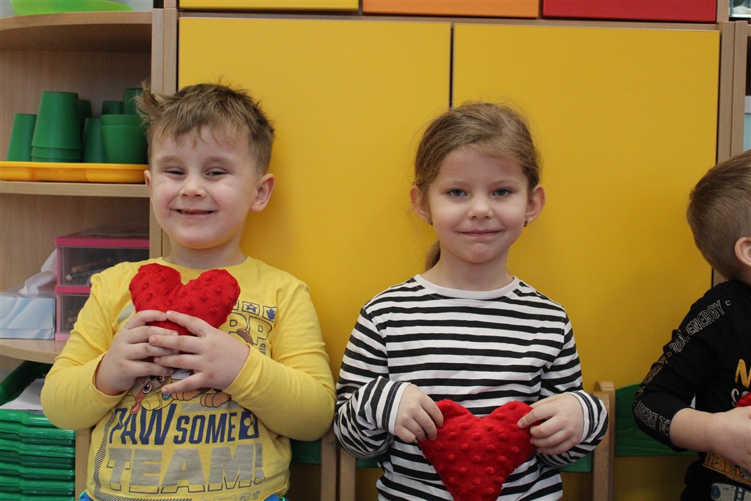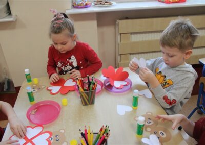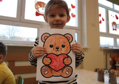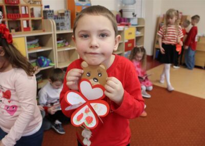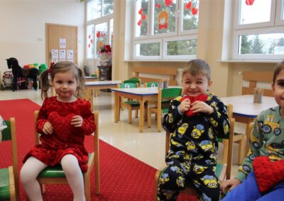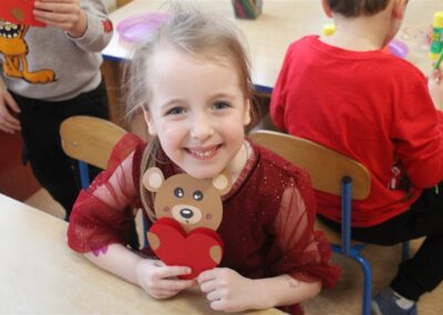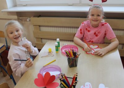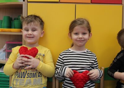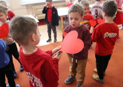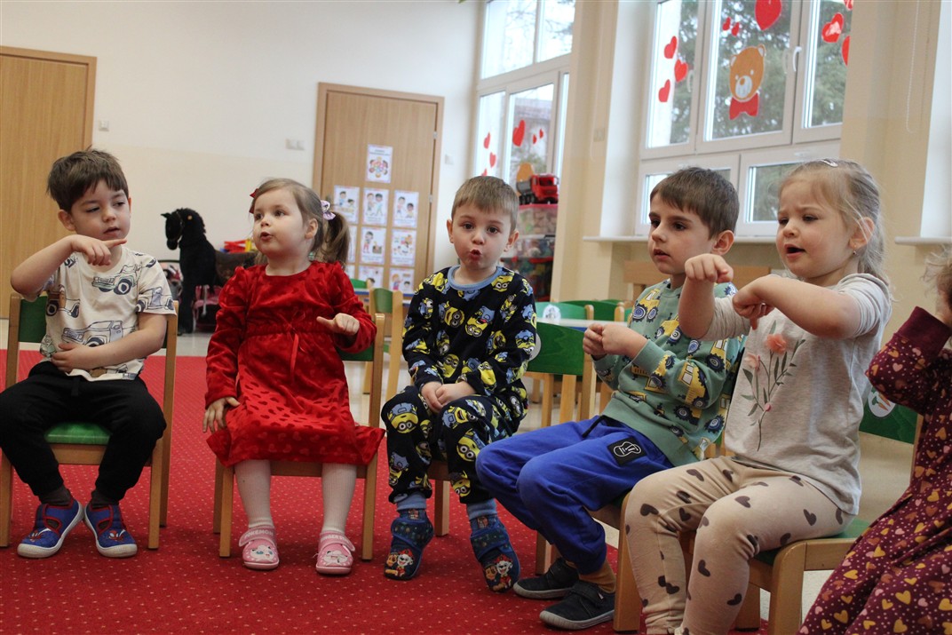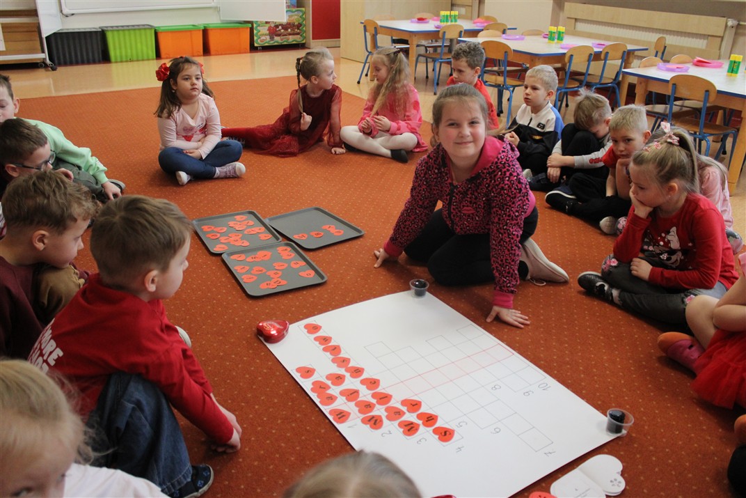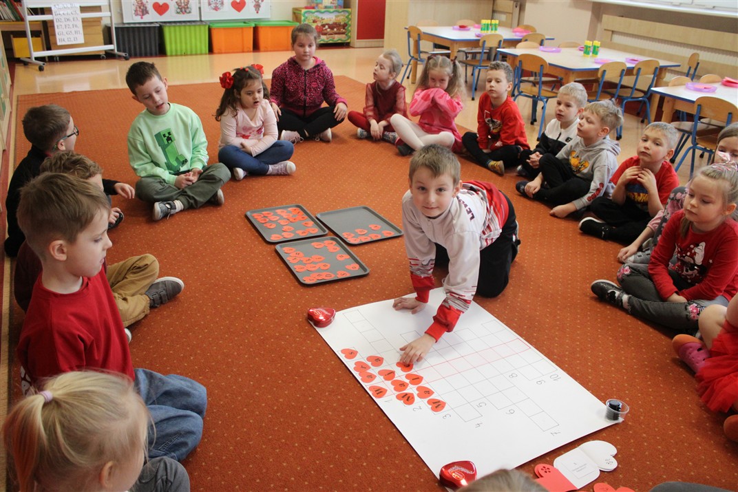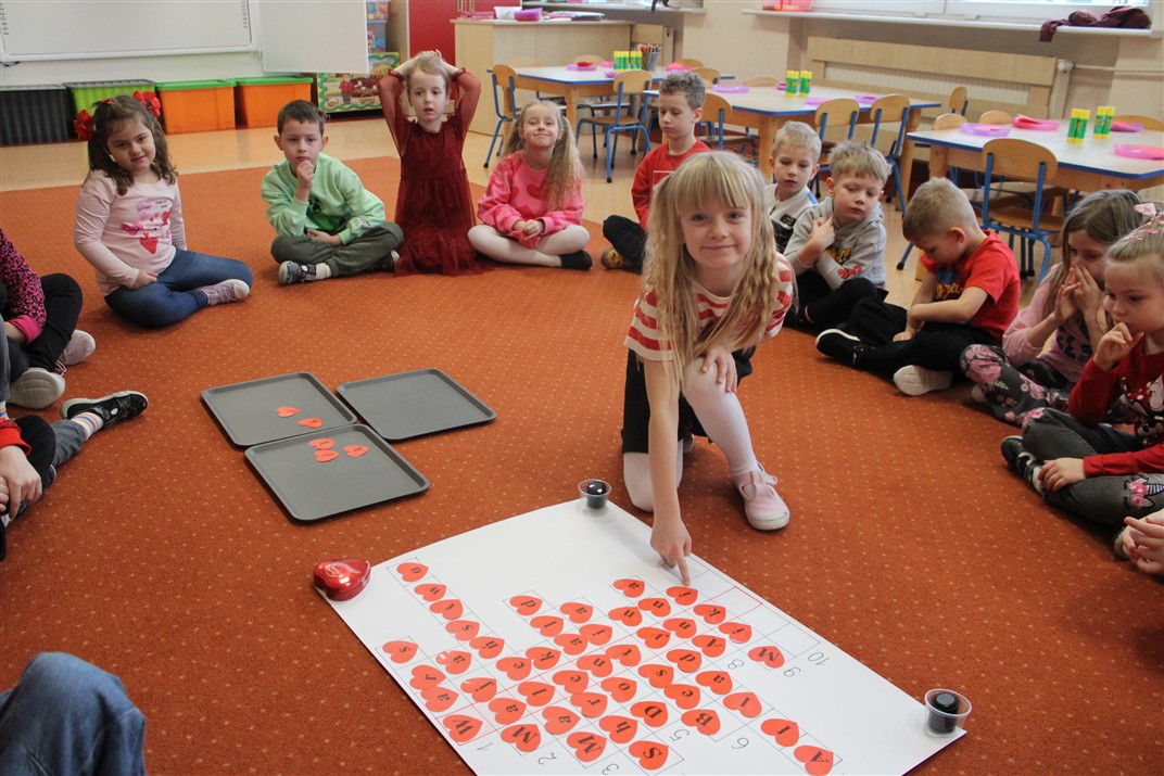 W dniu 13 lutego dzieci z grupy „Żabek” i „Biedronek” obchodziły Walentynki. Tego dnia wesoło bawiły się przy muzyce, układały memory, poznały bajkę dotyczącą Walentynek. Ponadto starszacy odkodowali obrazek przedstawiający serce, rozwiązali krzyżówkę o zakochanych bohaterach ulubionych bajek, której hasło brzmiało Walentynki. Natomiast podczas zabawy plastycznej wykonały walentynkę dla rodziców. Dzieci świetnie bawiły się i jednocześnie uczyły się okazywać uczucia innym osobom – kolegom, koleżankom, rodzicom… Był to dzień, który sprawił im wiele radości i niespodzianek.