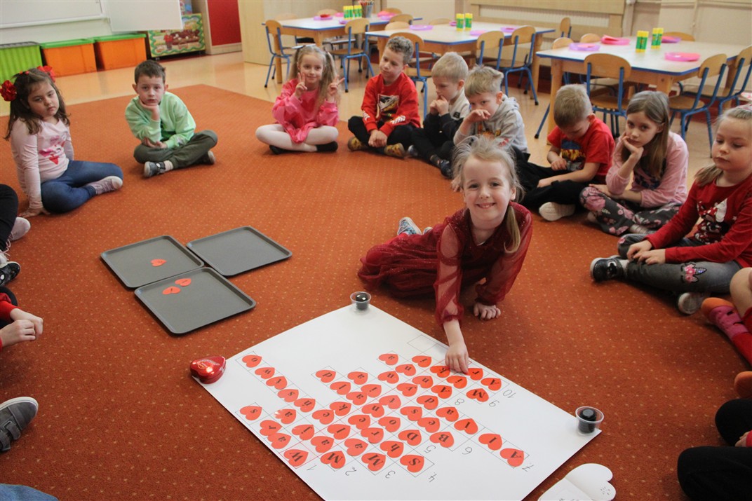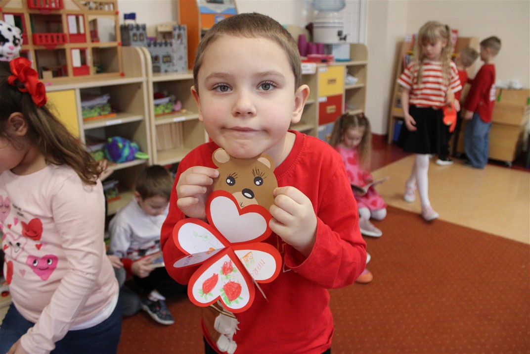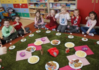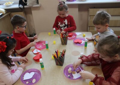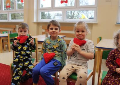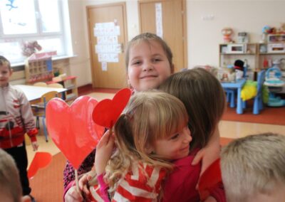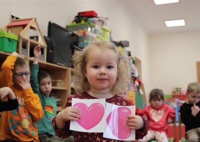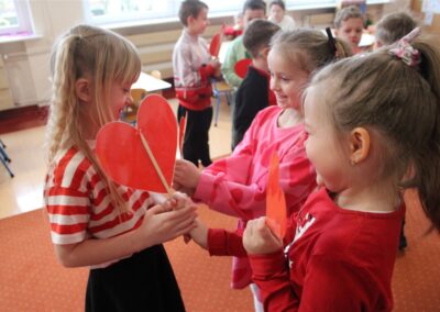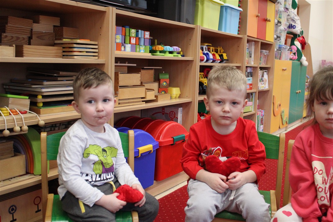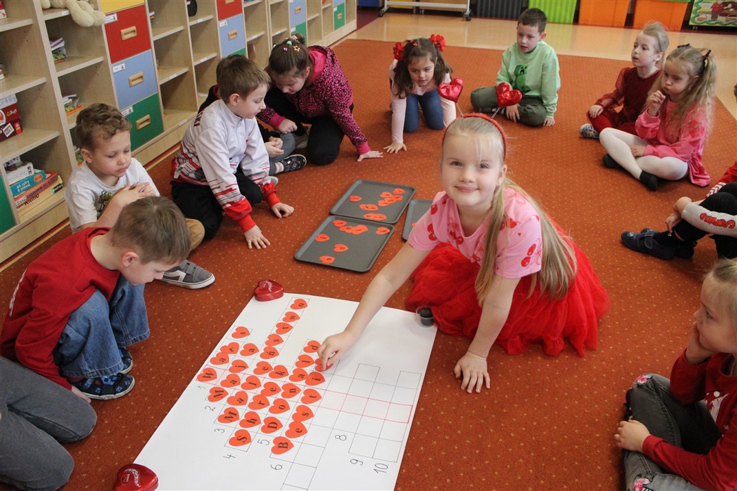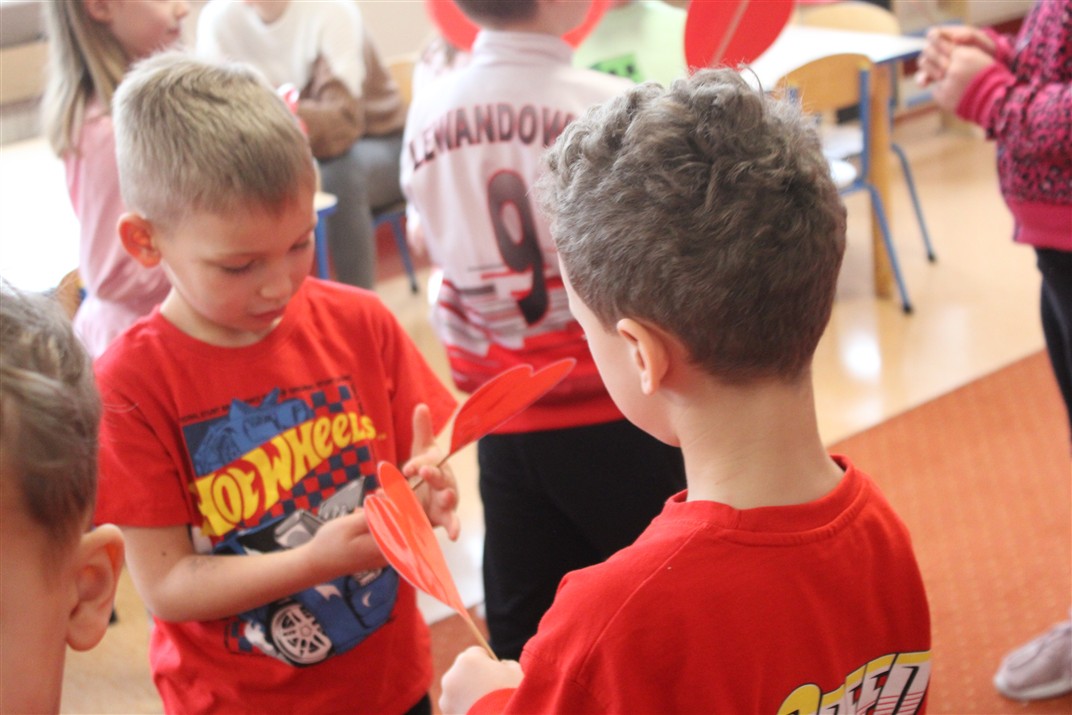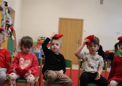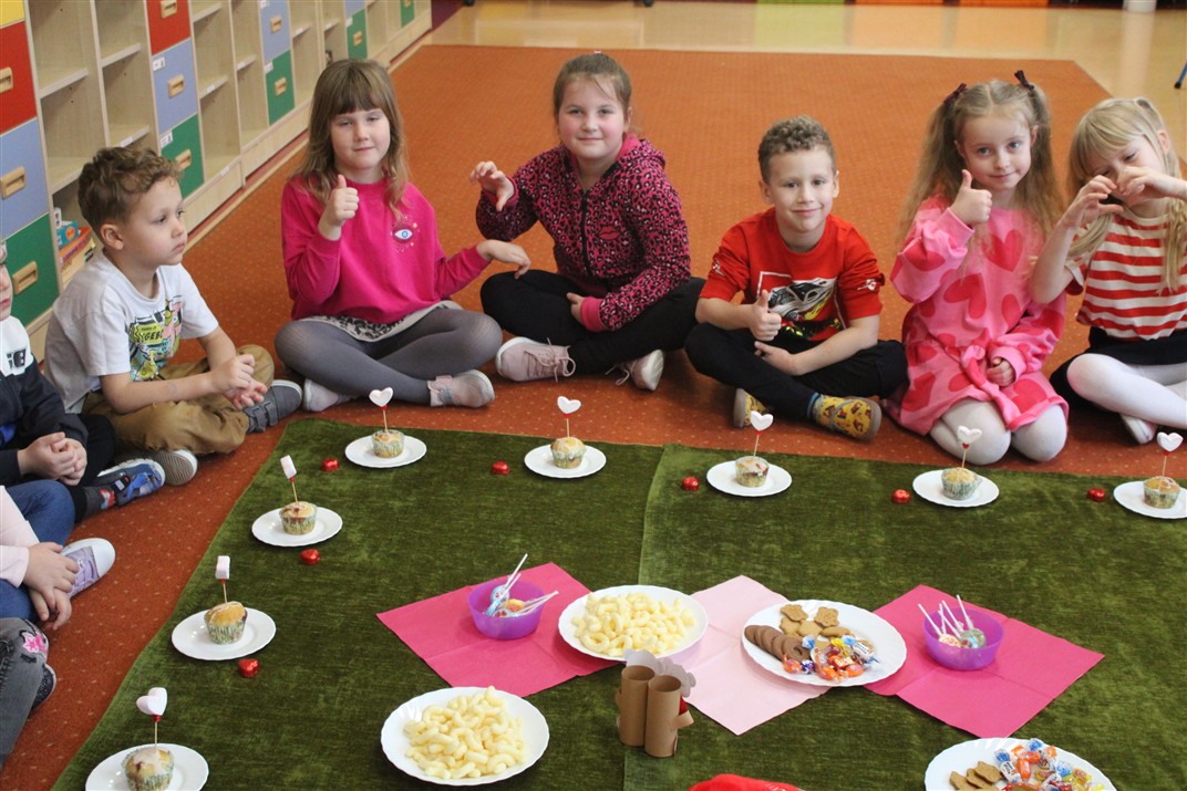 W dniu 13 lutego dzieci z grupy „Żabek” i „Biedronek” obchodziły Walentynki. Tego dnia wesoło bawiły się przy muzyce, układały memory, poznały bajkę dotyczącą Walentynek. Ponadto starszacy odkodowali obrazek przedstawiający serce, rozwiązali krzyżówkę o zakochanych bohaterach ulubionych bajek, której hasło brzmiało Walentynki. Natomiast podczas zabawy plastycznej wykonały walentynkę dla rodziców. Dzieci świetnie bawiły się i jednocześnie uczyły się okazywać uczucia innym osobom – kolegom, koleżankom, rodzicom… Był to dzień, który sprawił im wiele radości i niespodzianek.