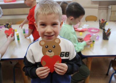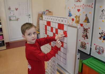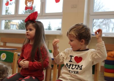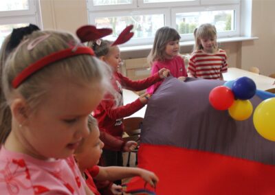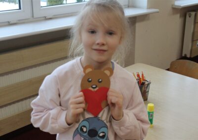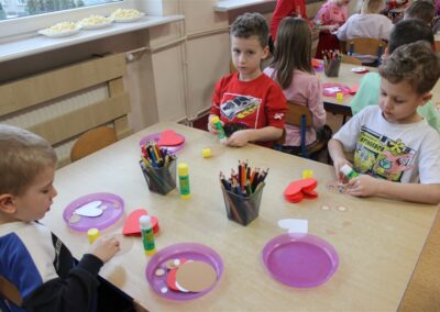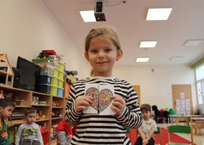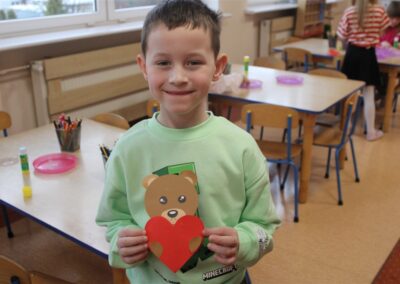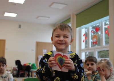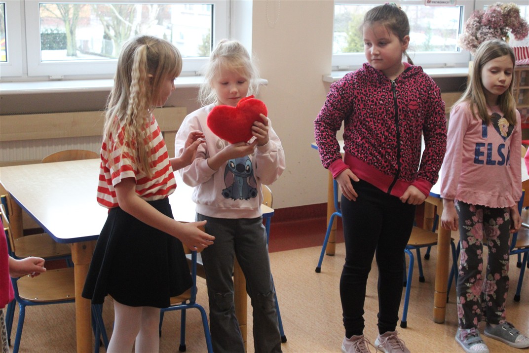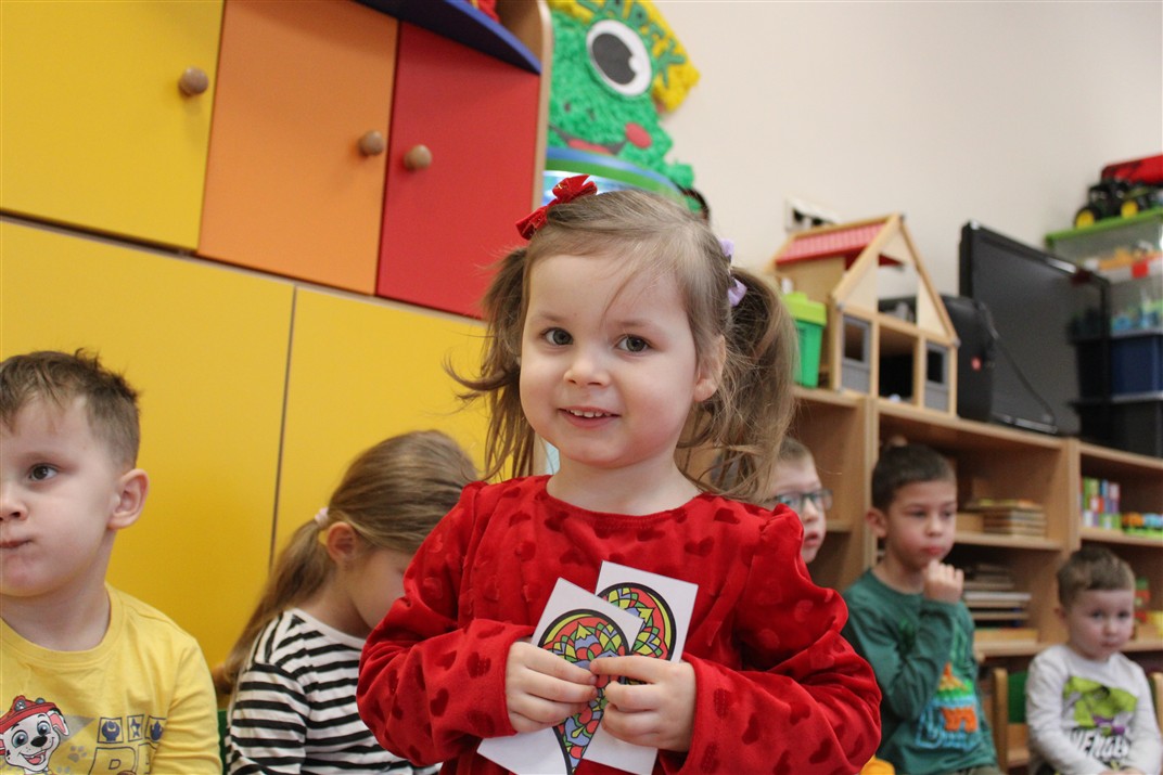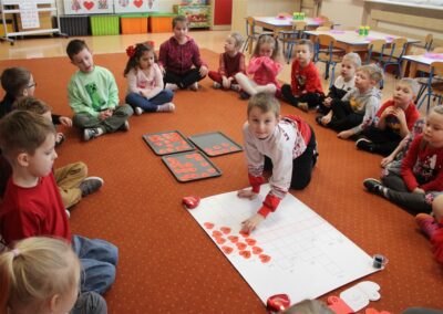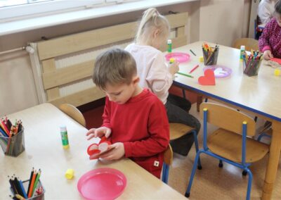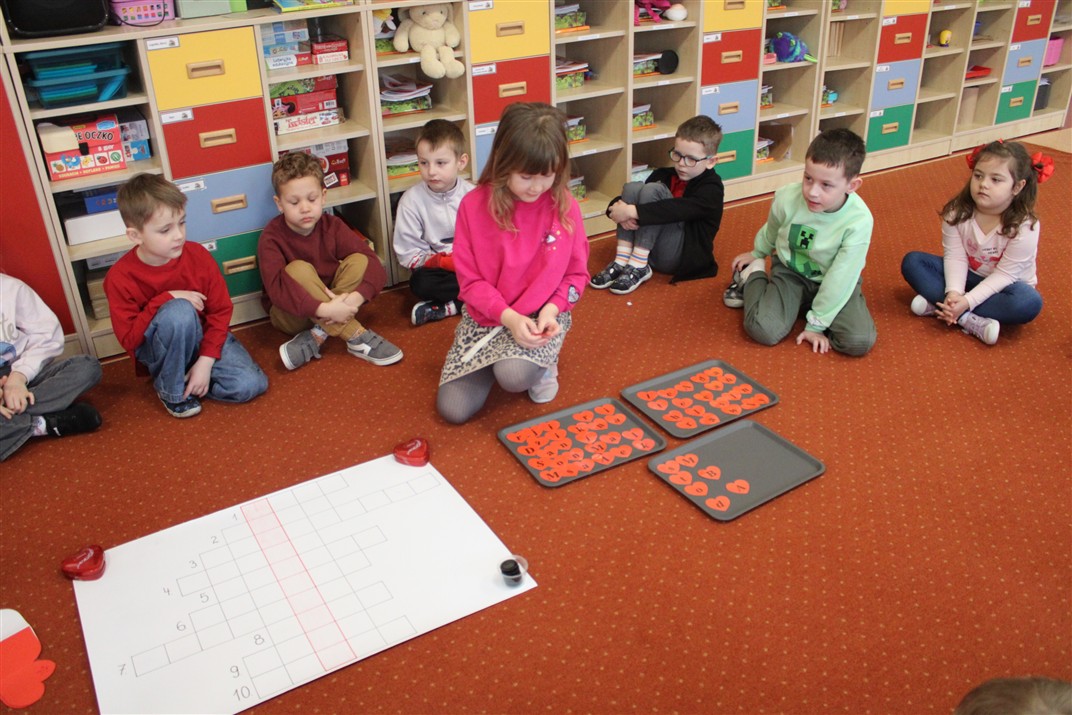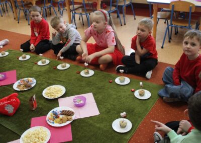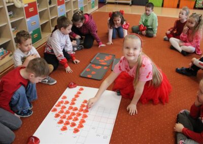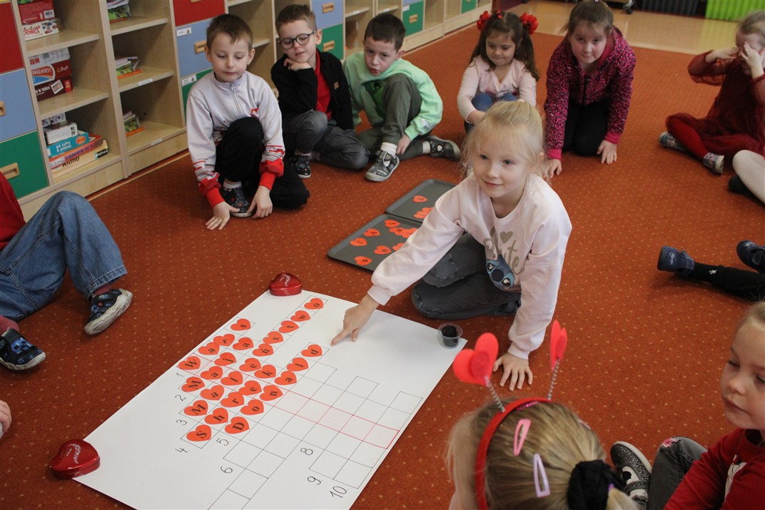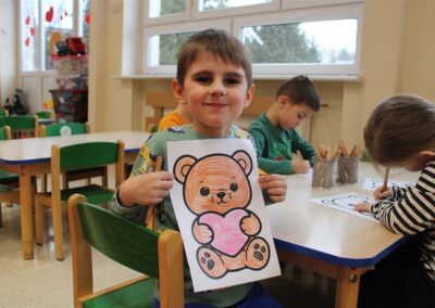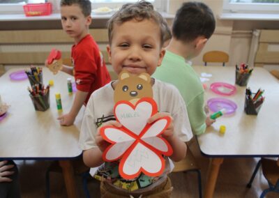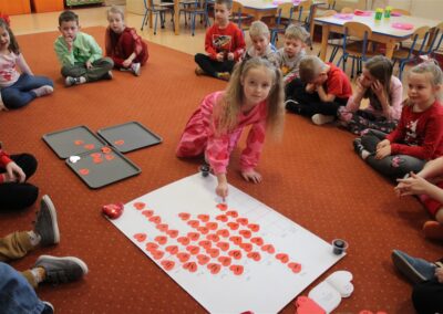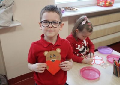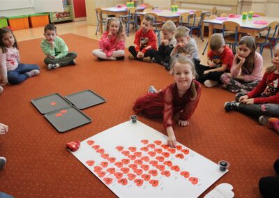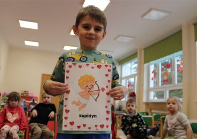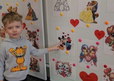 W dniu 13 lutego dzieci z grupy „Żabek” i „Biedronek” obchodziły Walentynki. Tego dnia wesoło bawiły się przy muzyce, układały memory, poznały bajkę dotyczącą Walentynek. Ponadto starszacy odkodowali obrazek przedstawiający serce, rozwiązali krzyżówkę o zakochanych bohaterach ulubionych bajek, której hasło brzmiało Walentynki. Natomiast podczas zabawy plastycznej wykonały walentynkę dla rodziców. Dzieci świetnie bawiły się i jednocześnie uczyły się okazywać uczucia innym osobom – kolegom, koleżankom, rodzicom… Był to dzień, który sprawił im wiele radości i niespodzianek.