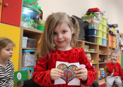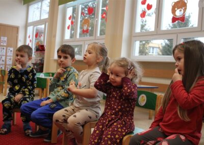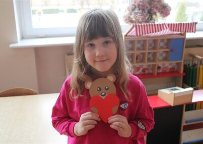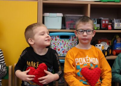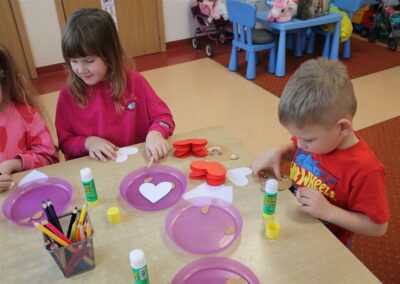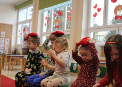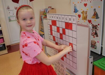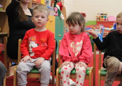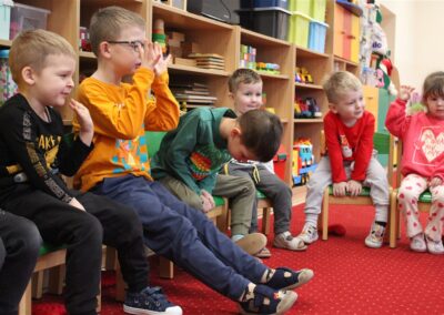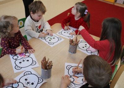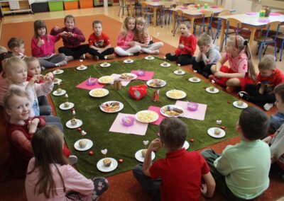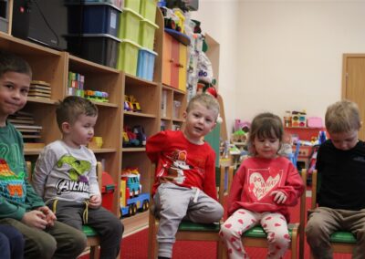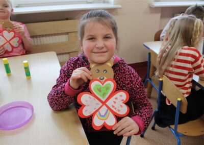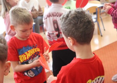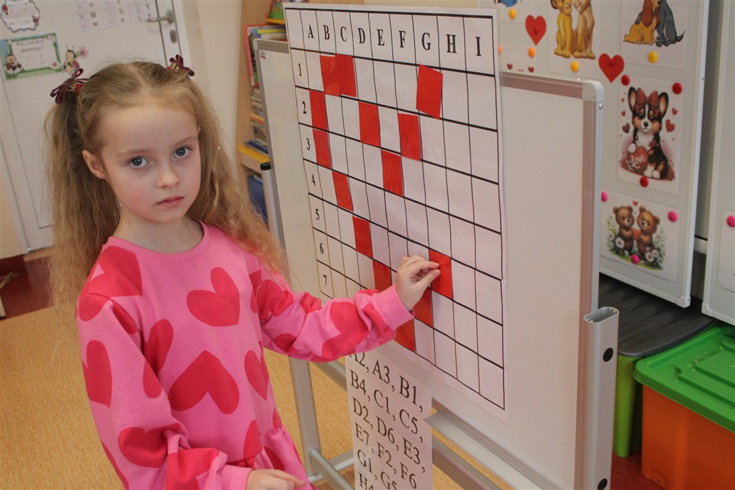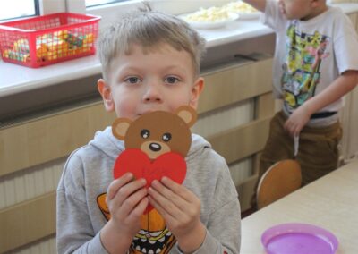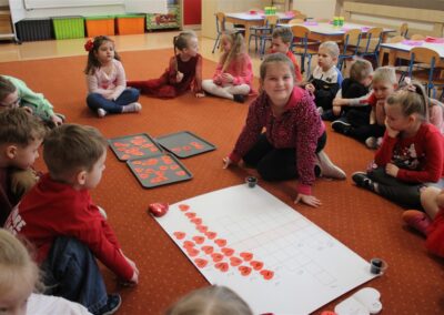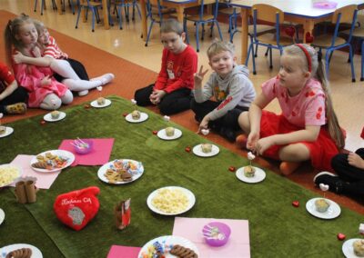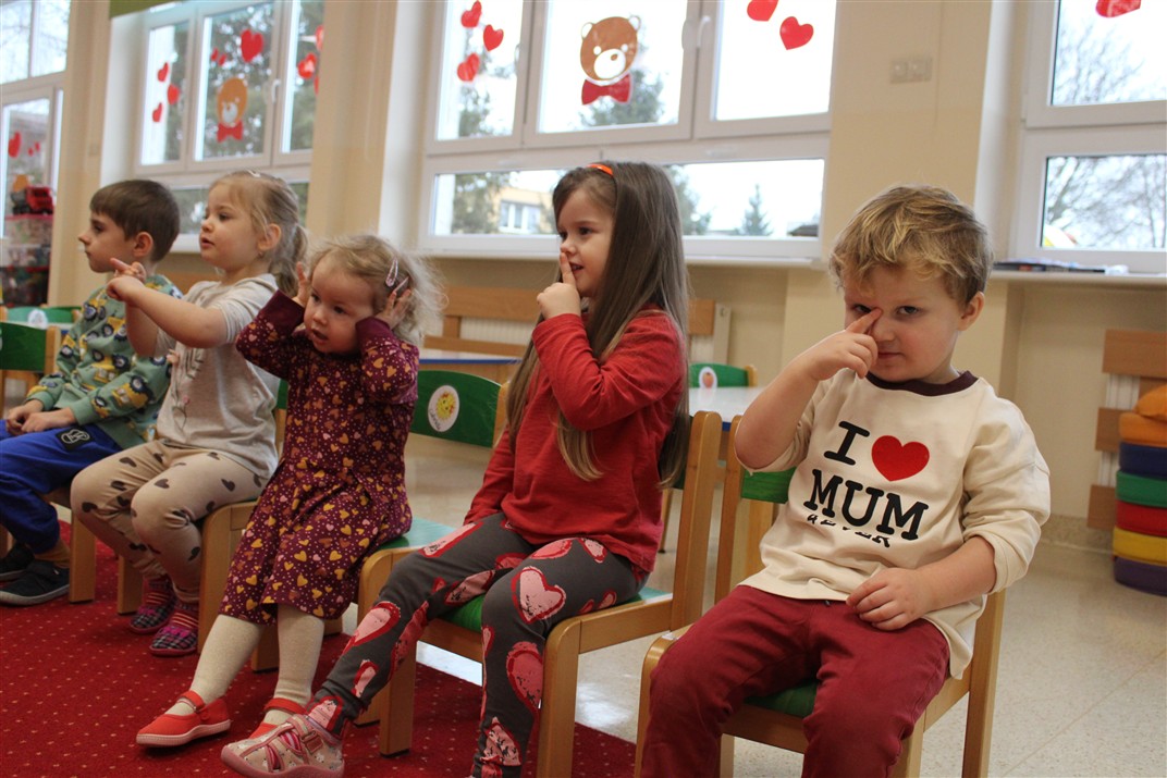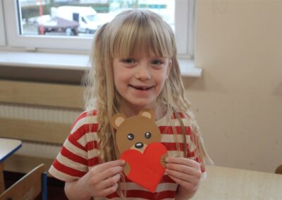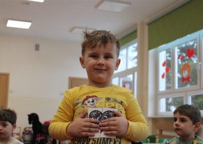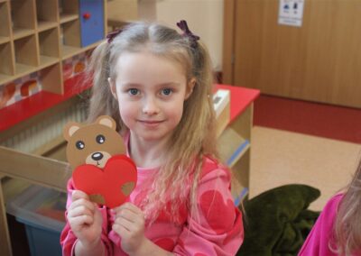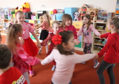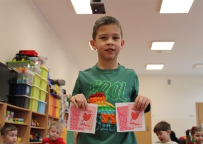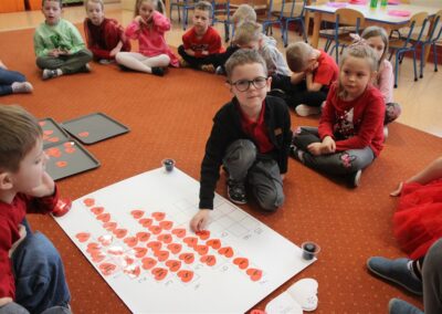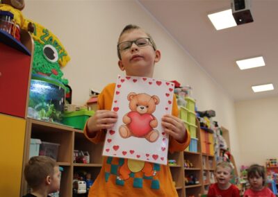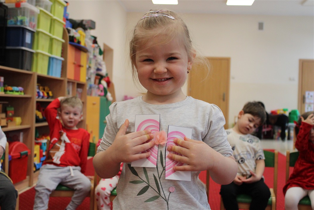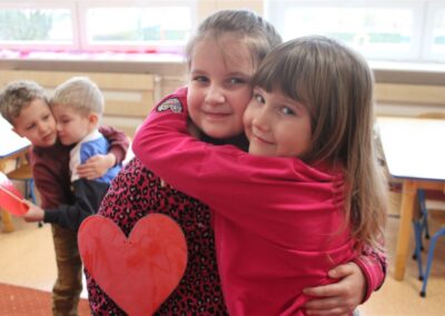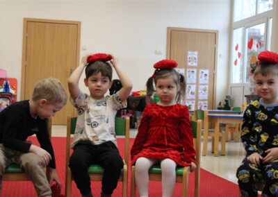 W dniu 13 lutego dzieci z grupy „Żabek” i „Biedronek” obchodziły Walentynki. Tego dnia wesoło bawiły się przy muzyce, układały memory, poznały bajkę dotyczącą Walentynek. Ponadto starszacy odkodowali obrazek przedstawiający serce, rozwiązali krzyżówkę o zakochanych bohaterach ulubionych bajek, której hasło brzmiało Walentynki. Natomiast podczas zabawy plastycznej wykonały walentynkę dla rodziców. Dzieci świetnie bawiły się i jednocześnie uczyły się okazywać uczucia innym osobom – kolegom, koleżankom, rodzicom… Był to dzień, który sprawił im wiele radości i niespodzianek.