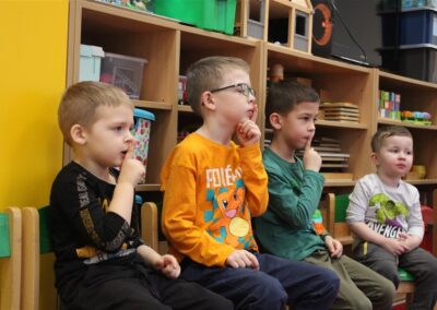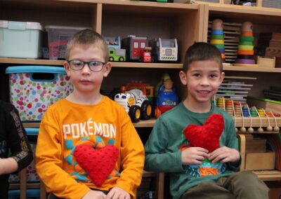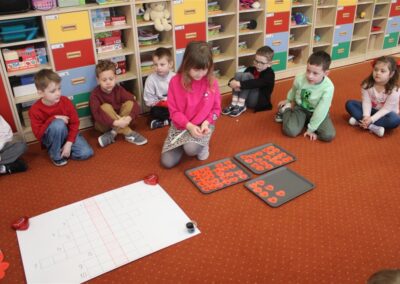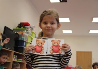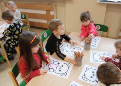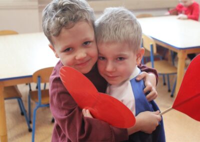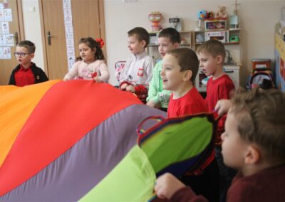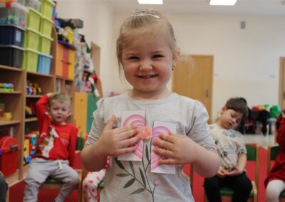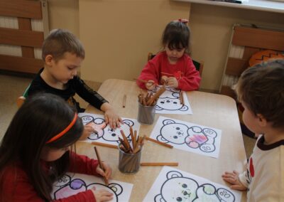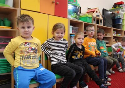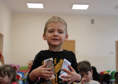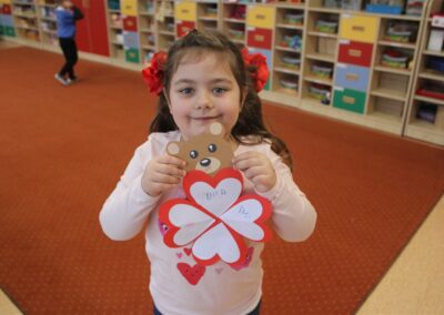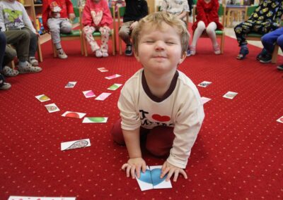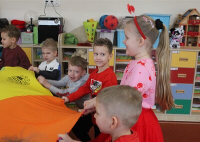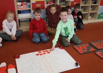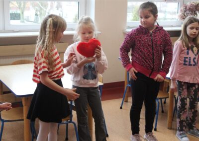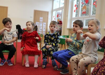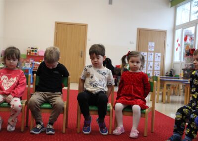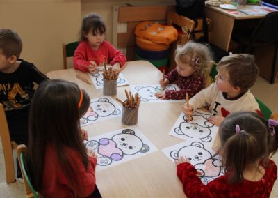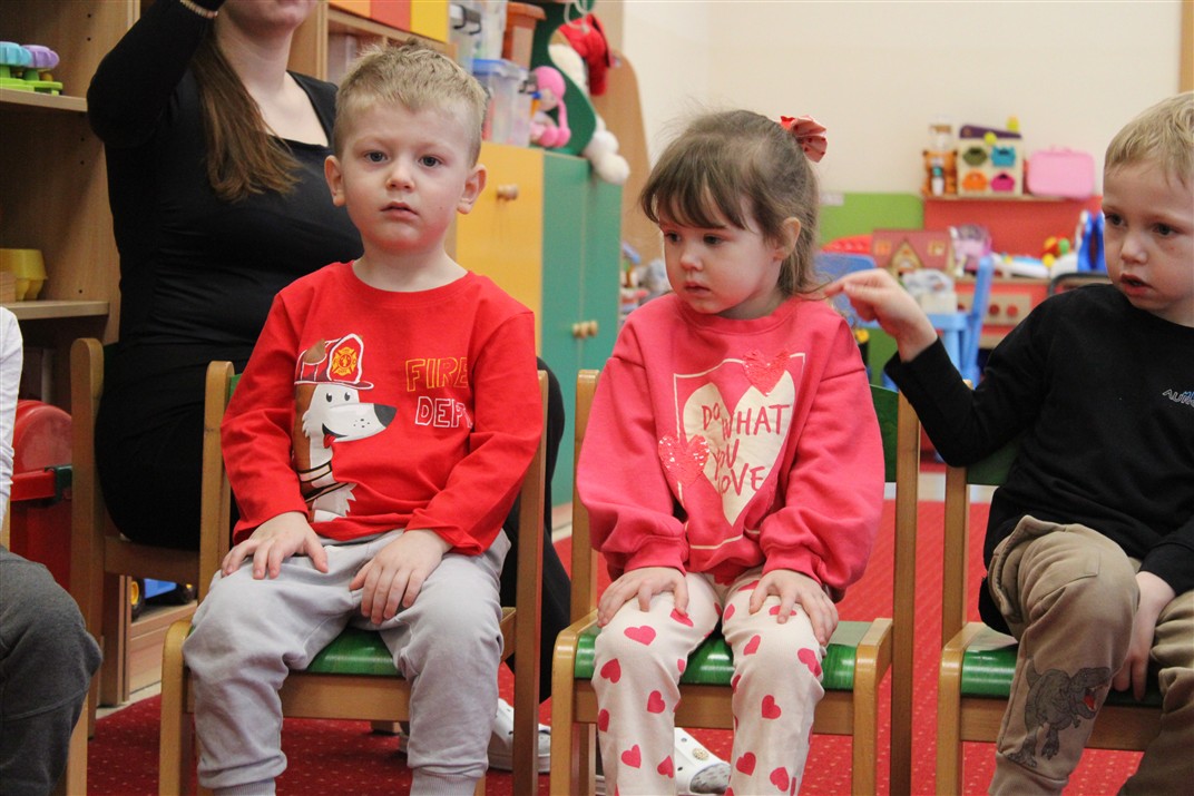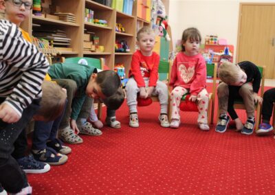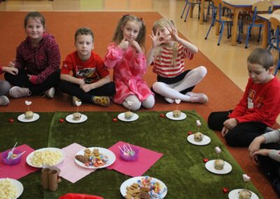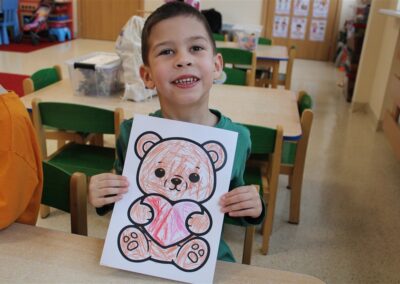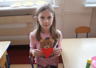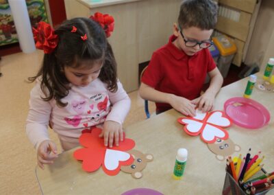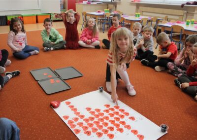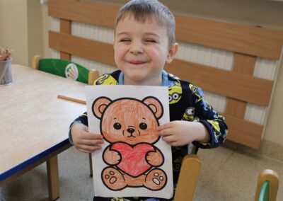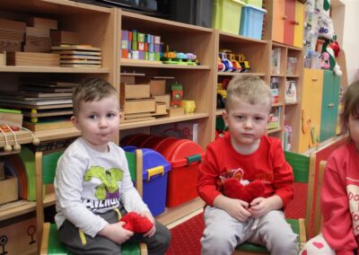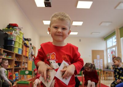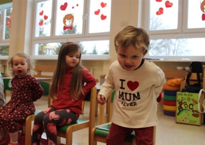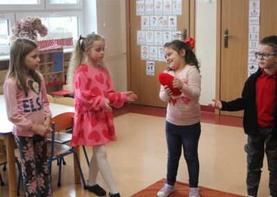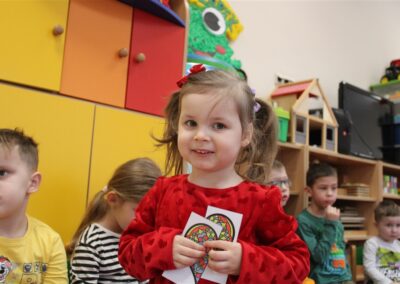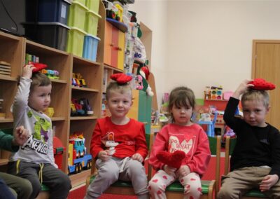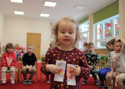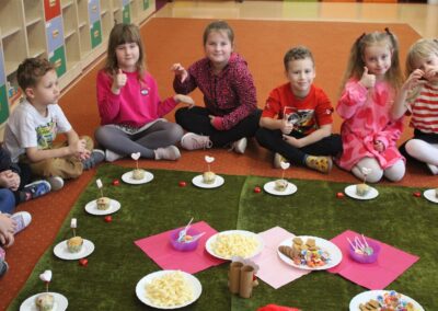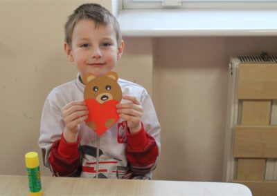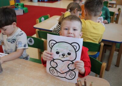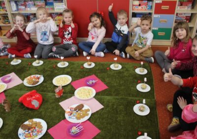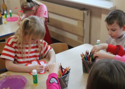W dniu 13 lutego dzieci z grupy „Żabek” i „Biedronek” obchodziły Walentynki. Tego dnia wesoło bawiły się przy muzyce, układały memory, poznały bajkę dotyczącą Walentynek. Ponadto starszacy odkodowali obrazek przedstawiający serce, rozwiązali krzyżówkę o zakochanych bohaterach ulubionych bajek, której hasło brzmiało Walentynki. Natomiast podczas zabawy plastycznej wykonały walentynkę dla rodziców. Dzieci świetnie bawiły się i jednocześnie uczyły się okazywać uczucia innym osobom – kolegom, koleżankom, rodzicom… Był to dzień, który sprawił im wiele radości i niespodzianek.