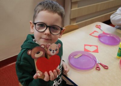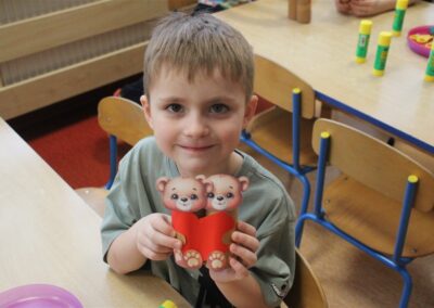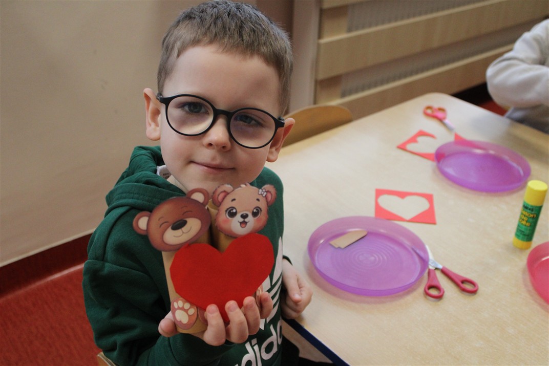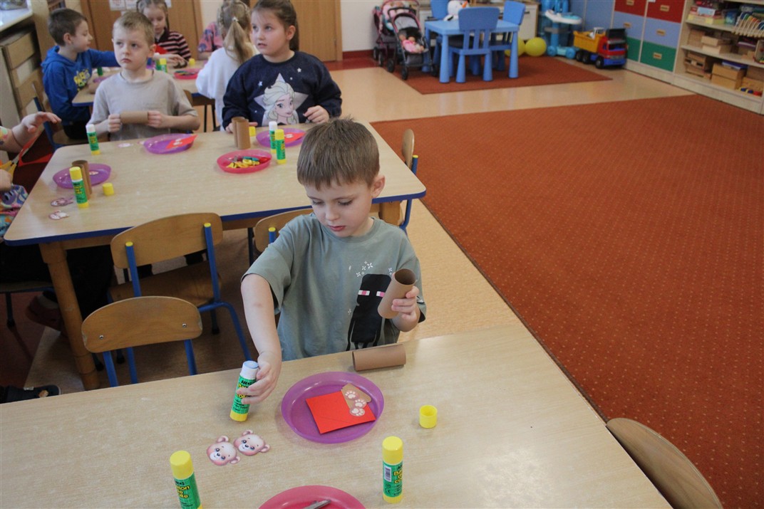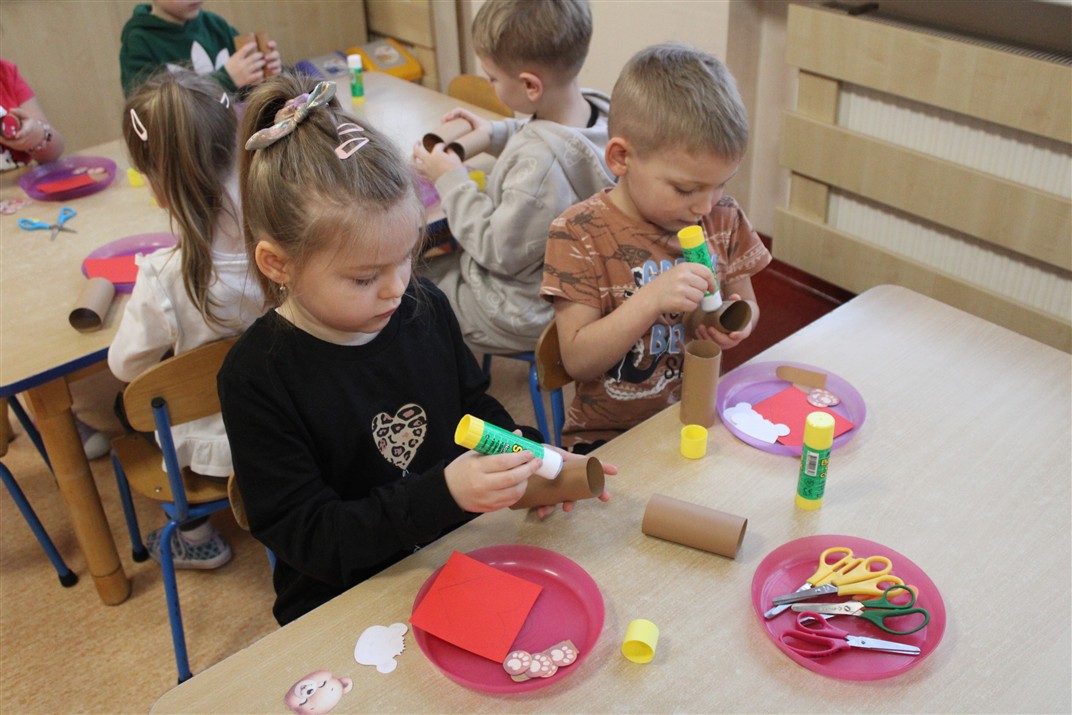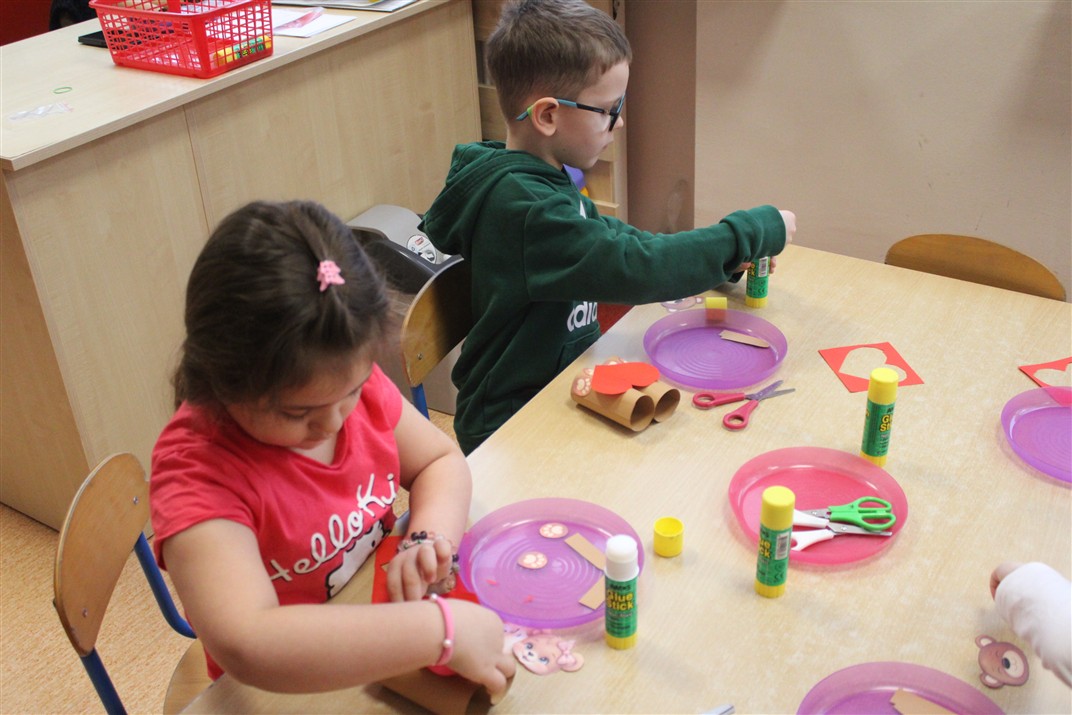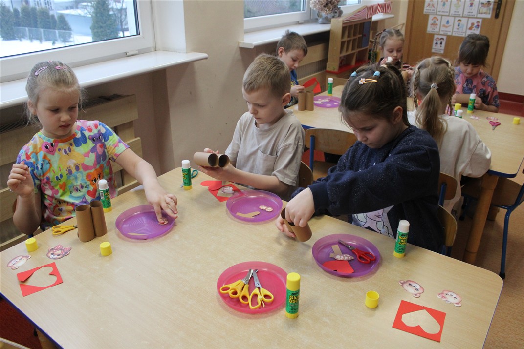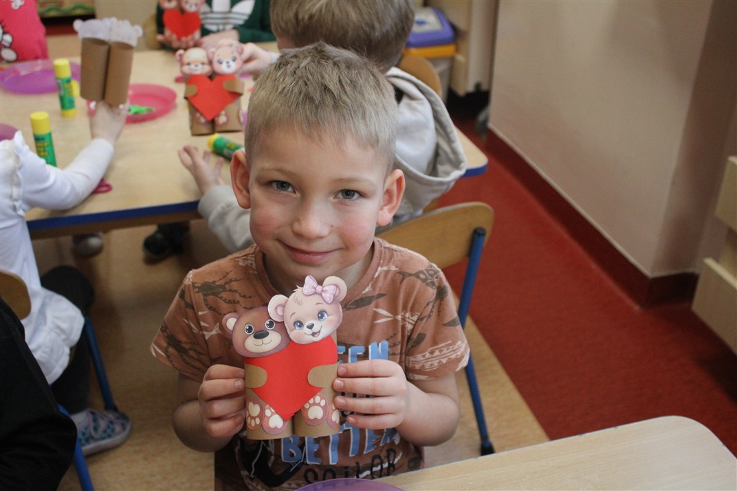 „Walentynkowe misie” – zabawa plastyczna w grupie Biedronek