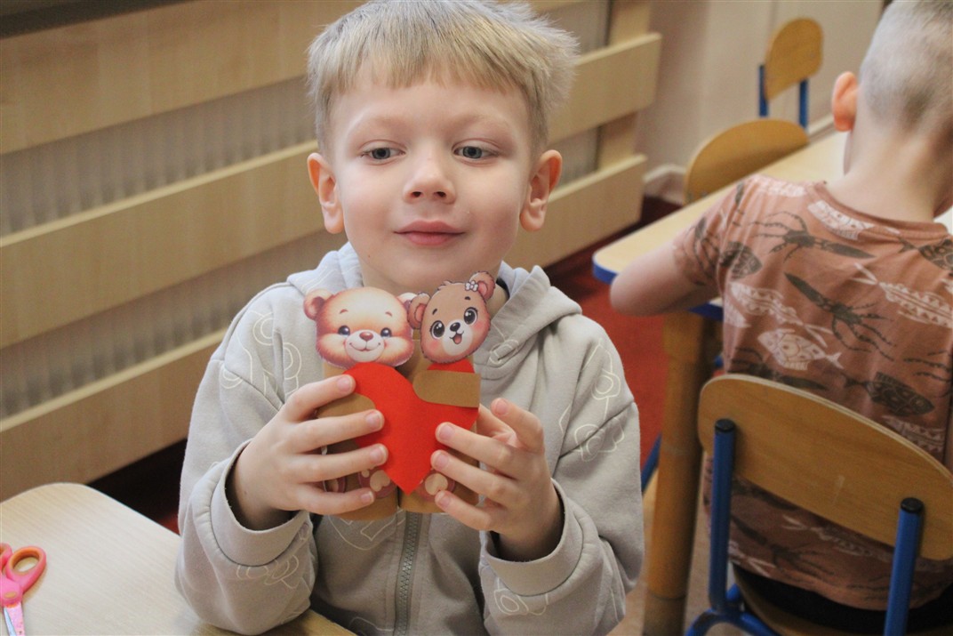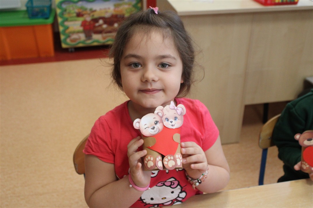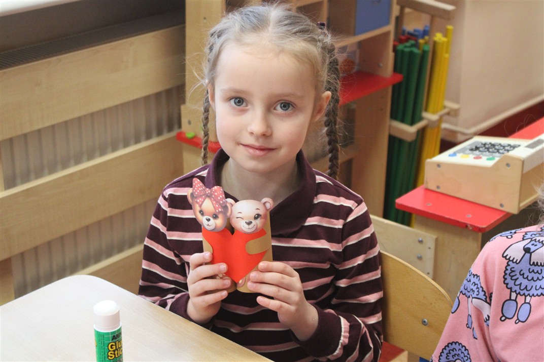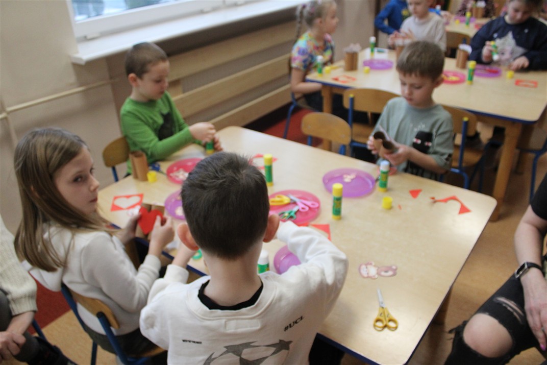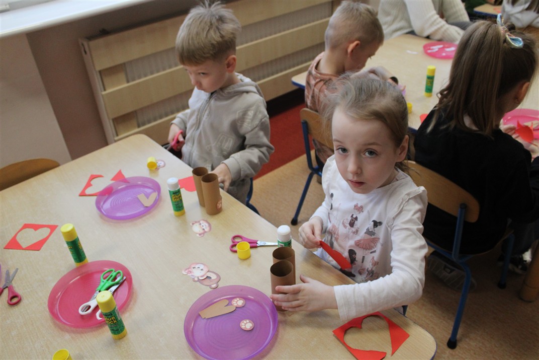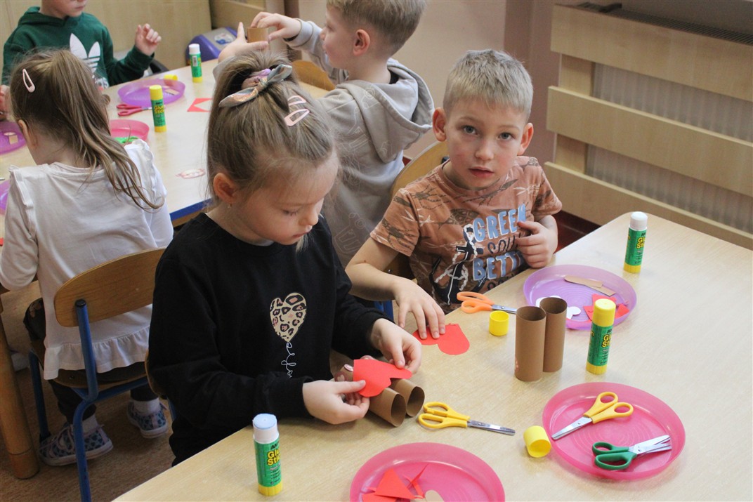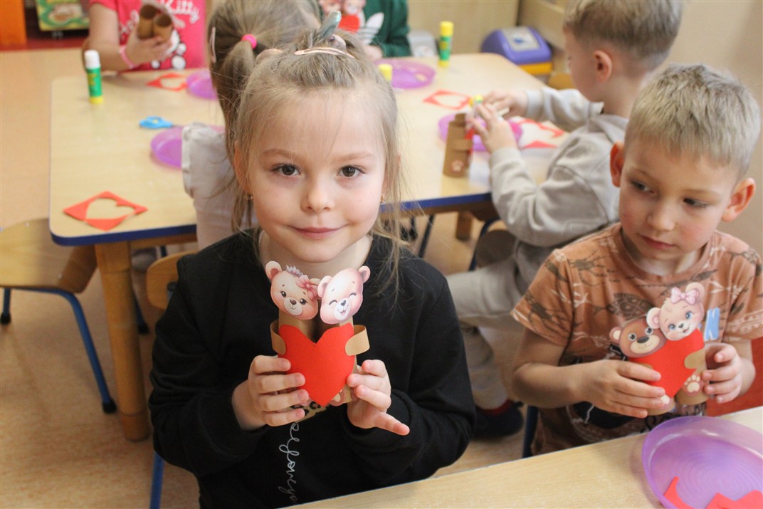 „Walentynkowe misie” – zabawa plastyczna w grupie Biedronek