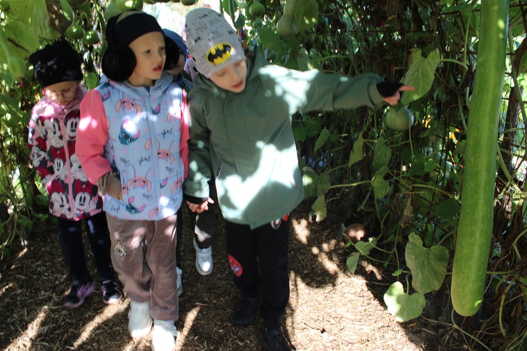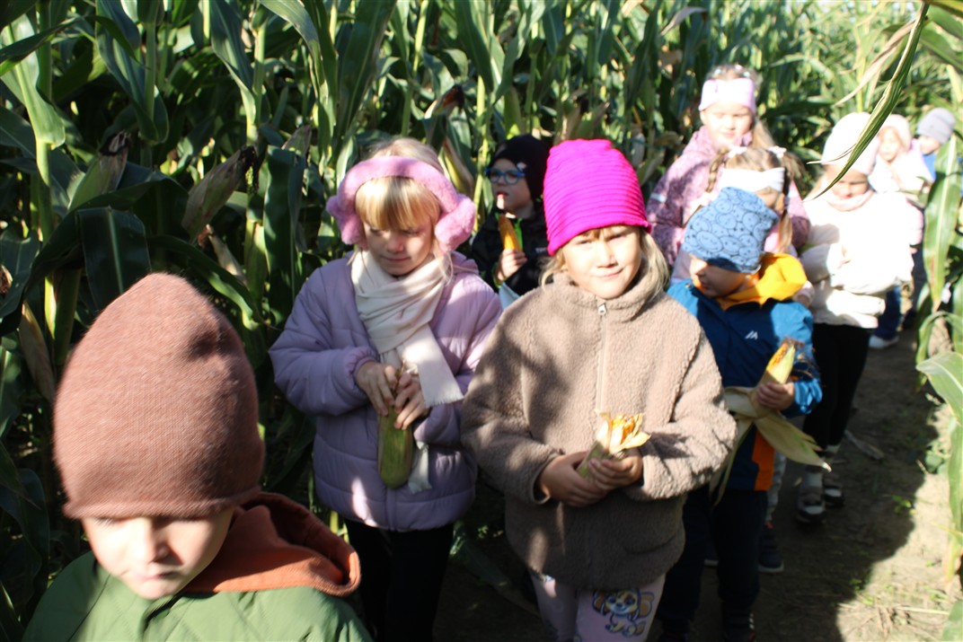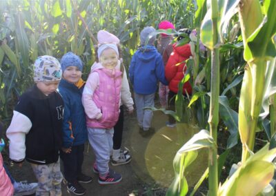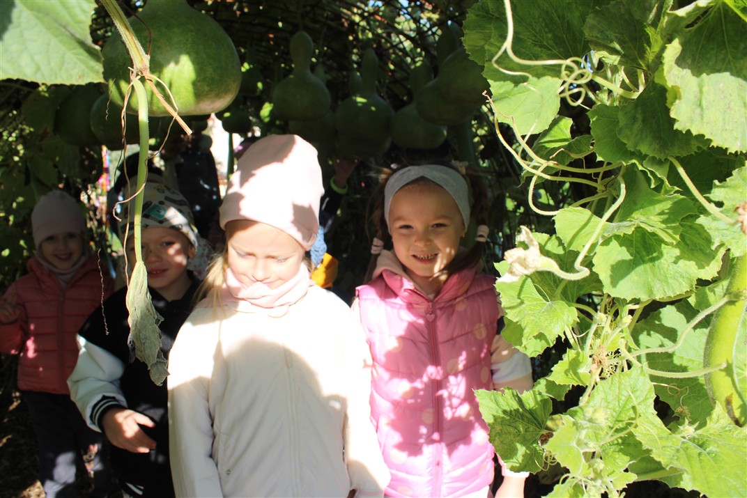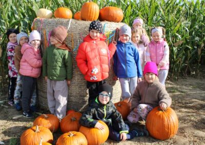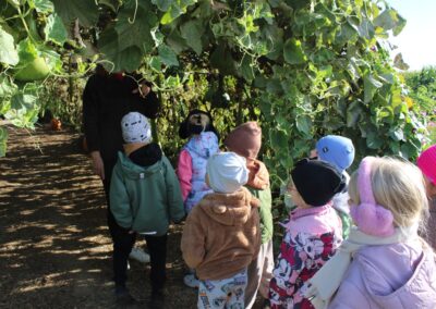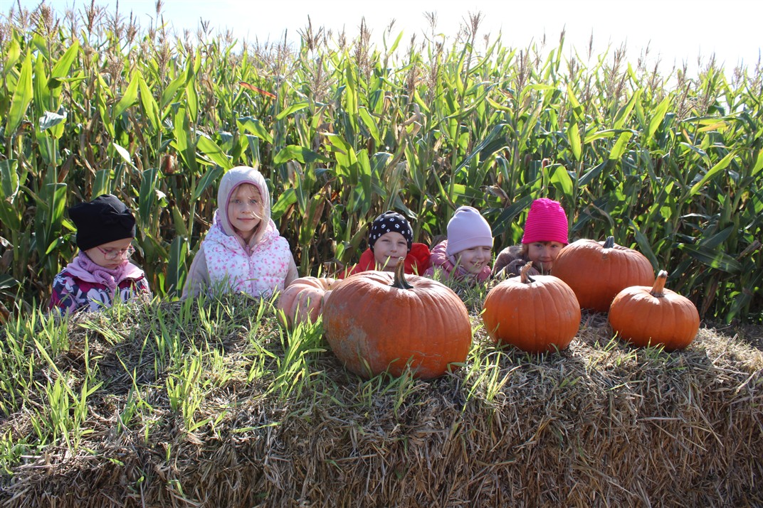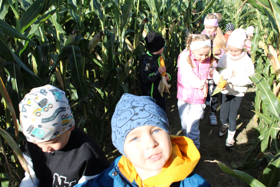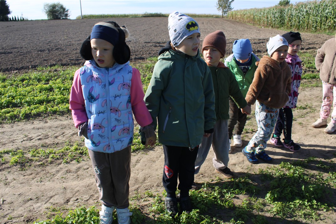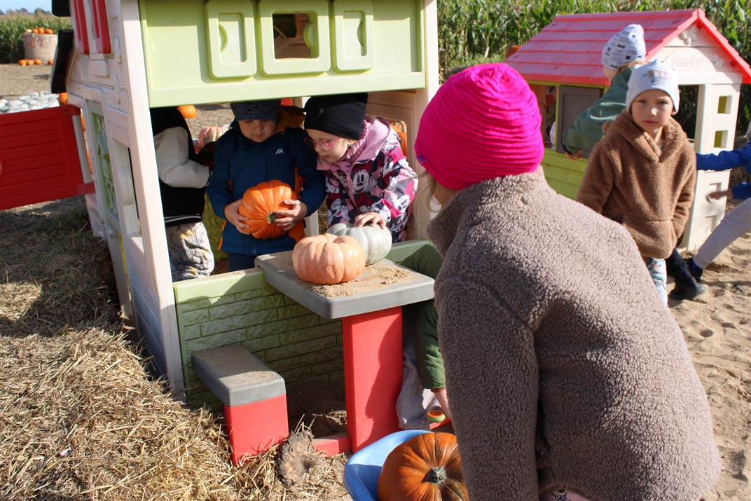 W dniu 26 września dzieci z grupy „Biedronek” wyjechały na wycieczkę do Kopaszyna, na farmę dyń „Dyniowato”. Na początku spotkania dowiedziały się, jak wiele gatunków dyń zgromadzonych jest na farmie, jak one wyglądają i które z nich są przeznaczone do jedzenia, a które nie. Obejrzały pole, na którym urosły dynie i poznały wiadomości na temat warunków potrzebnych dyniom do wzrostu. Podczas warsztatów miały okazję obejrzeć ogromne dynie także od środka i wybrać z nich pestki, które zabrały do domu. Najatrakcyjniejsze jednak okazały się zabawy ruchowe wśród setek dyń, w tym wędrowanie labiryntem wśród kukurydzy i wielu dyń, czy też zabawy na dyniowym placu zabaw.