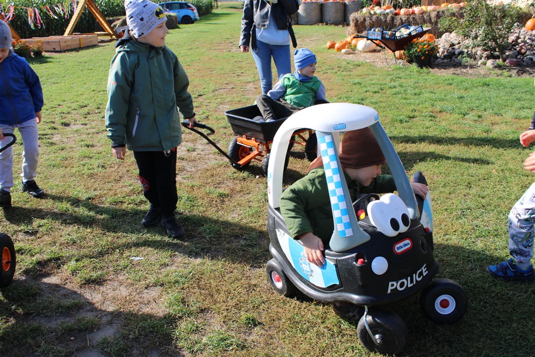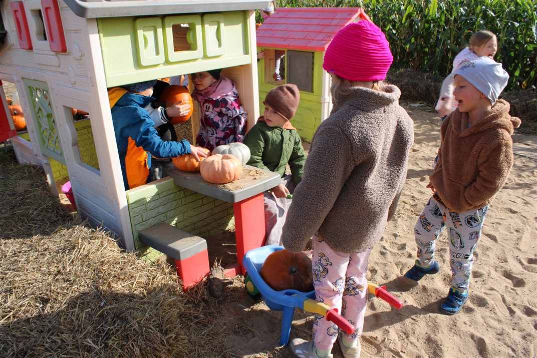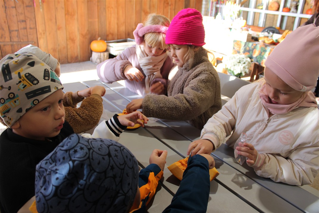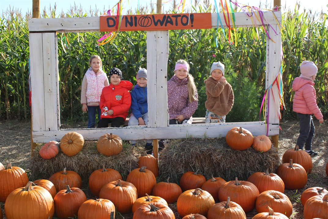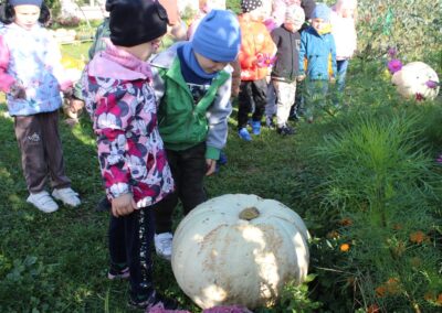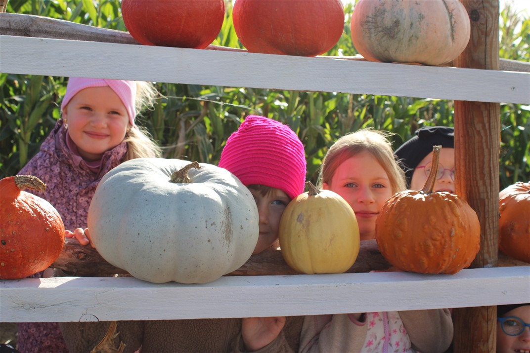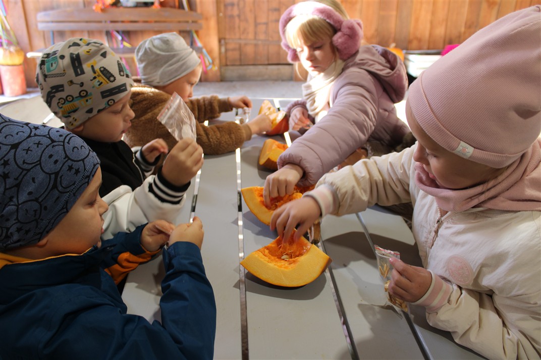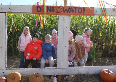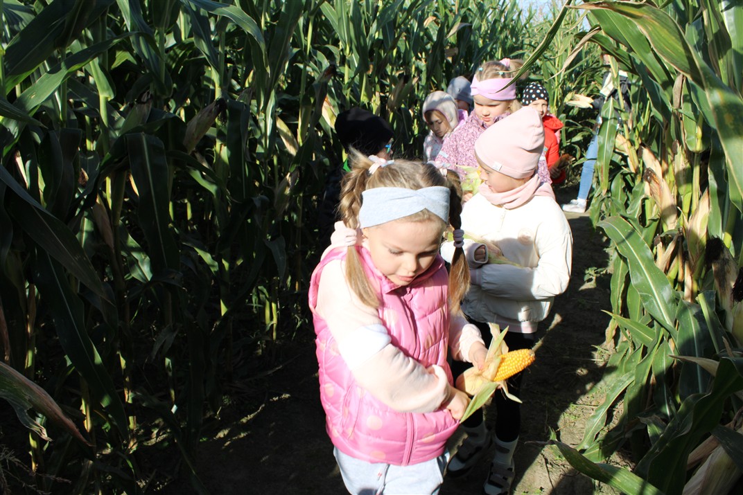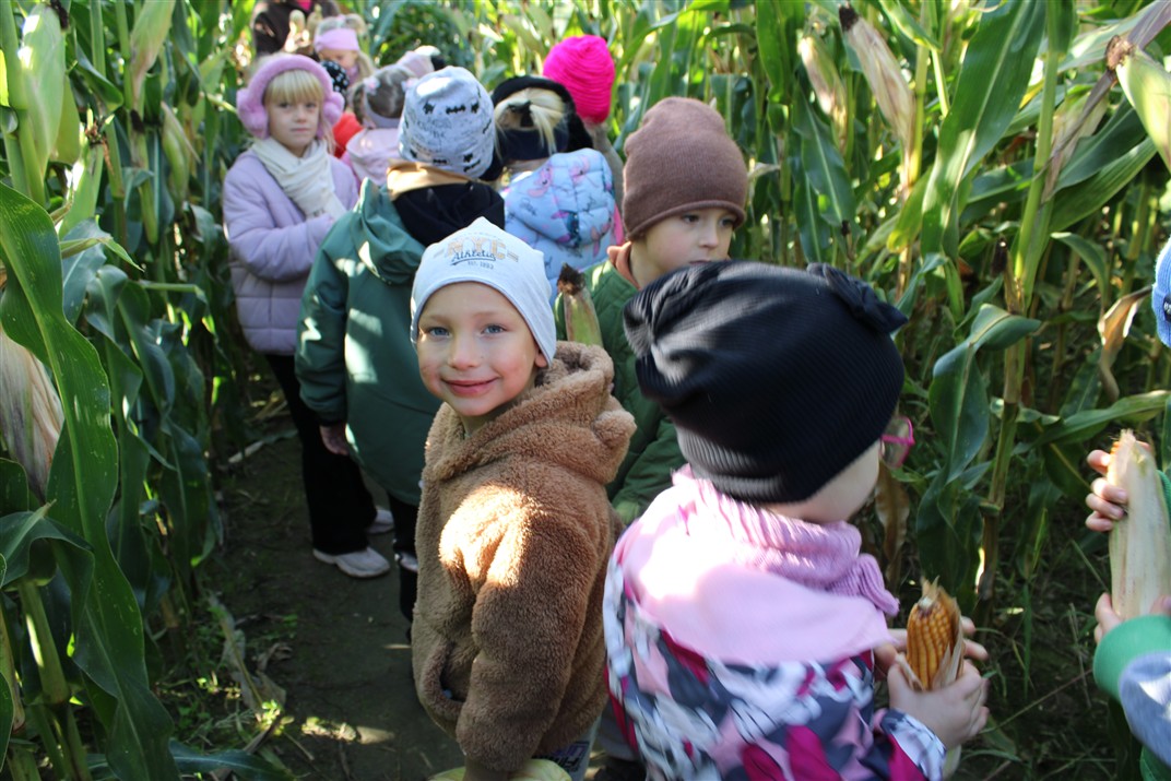 W dniu 26 września dzieci z grupy „Biedronek” wyjechały na wycieczkę do Kopaszyna, na farmę dyń „Dyniowato”. Na początku spotkania dowiedziały się, jak wiele gatunków dyń zgromadzonych jest na farmie, jak one wyglądają i które z nich są przeznaczone do jedzenia, a które nie. Obejrzały pole, na którym urosły dynie i poznały wiadomości na temat warunków potrzebnych dyniom do wzrostu. Podczas warsztatów miały okazję obejrzeć ogromne dynie także od środka i wybrać z nich pestki, które zabrały do domu. Najatrakcyjniejsze jednak okazały się zabawy ruchowe wśród setek dyń, w tym wędrowanie labiryntem wśród kukurydzy i wielu dyń, czy też zabawy na dyniowym placu zabaw.