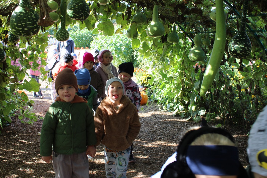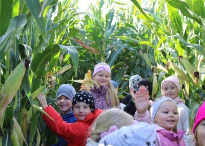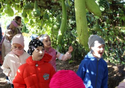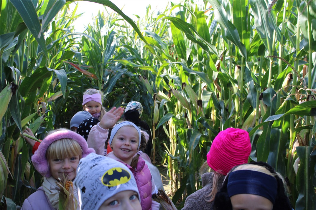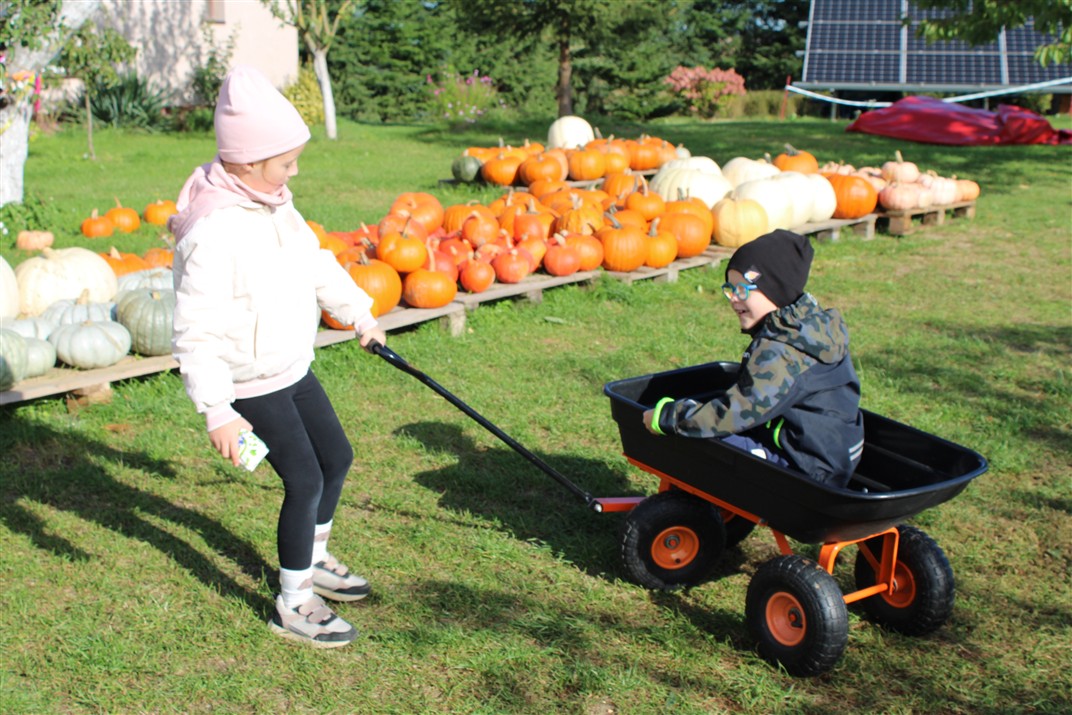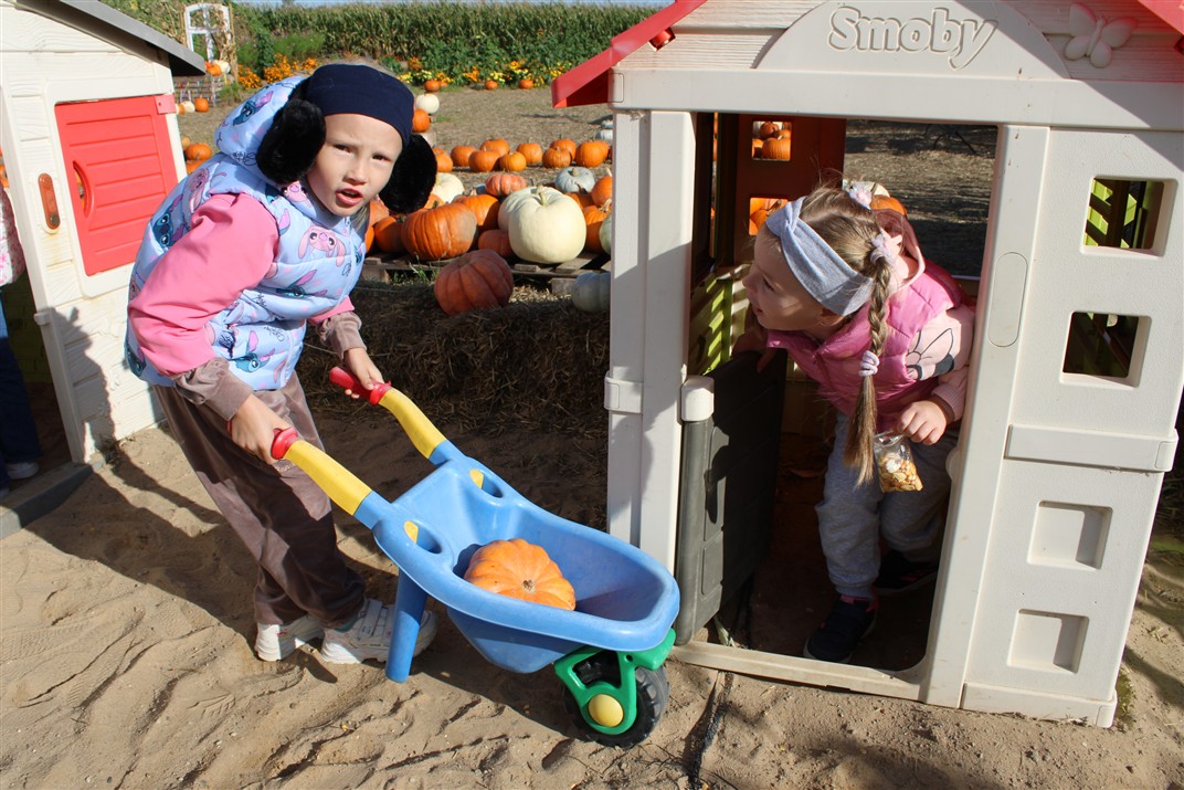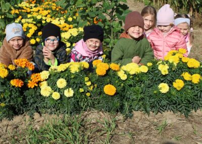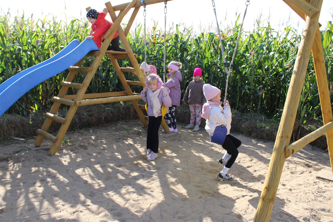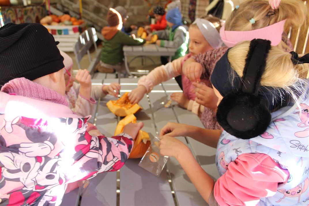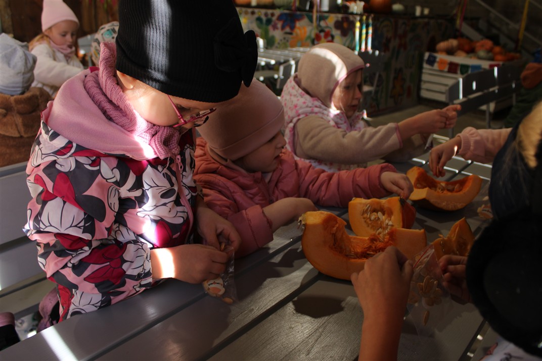 W dniu 26 września dzieci z grupy „Biedronek” wyjechały na wycieczkę do Kopaszyna, na farmę dyń „Dyniowato”. Na początku spotkania dowiedziały się, jak wiele gatunków dyń zgromadzonych jest na farmie, jak one wyglądają i które z nich są przeznaczone do jedzenia, a które nie. Obejrzały pole, na którym urosły dynie i poznały wiadomości na temat warunków potrzebnych dyniom do wzrostu. Podczas warsztatów miały okazję obejrzeć ogromne dynie także od środka i wybrać z nich pestki, które zabrały do domu. Najatrakcyjniejsze jednak okazały się zabawy ruchowe wśród setek dyń, w tym wędrowanie labiryntem wśród kukurydzy i wielu dyń, czy też zabawy na dyniowym placu zabaw.