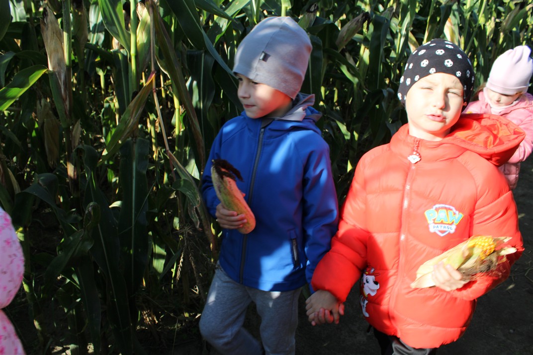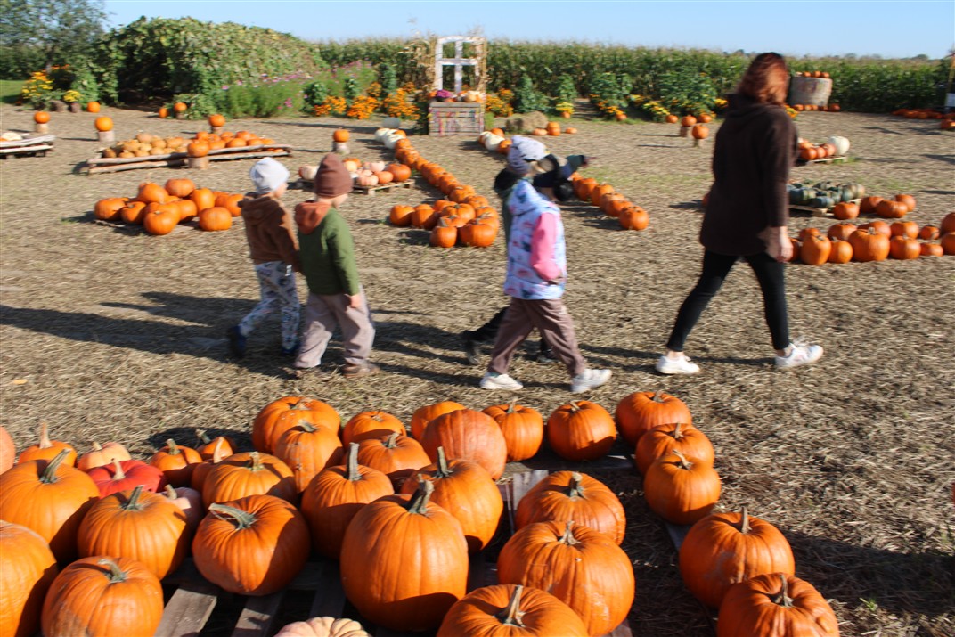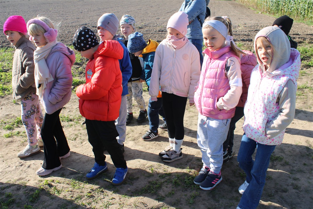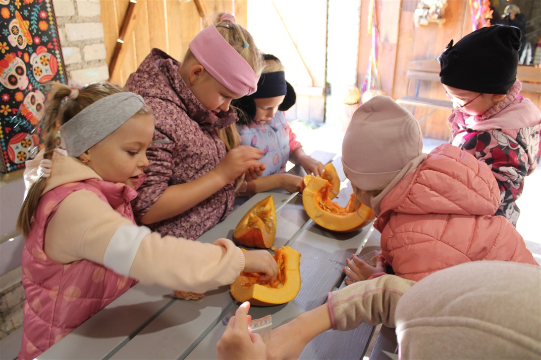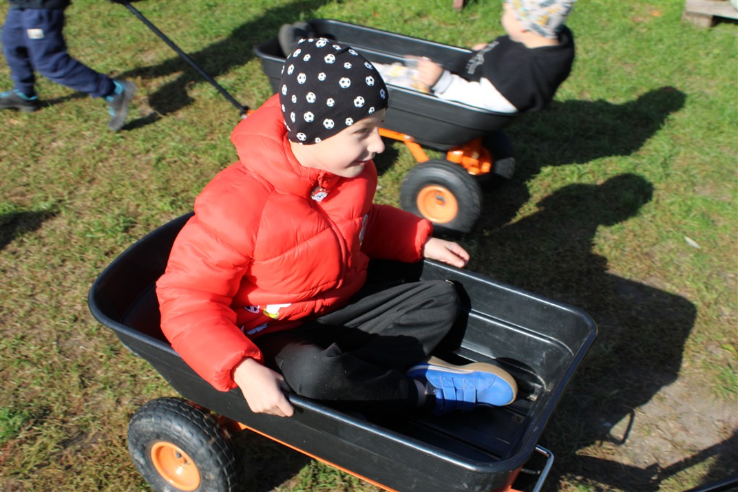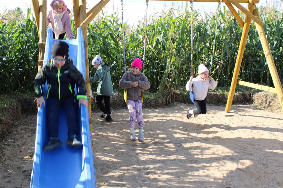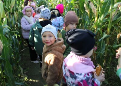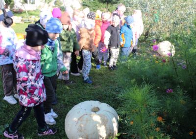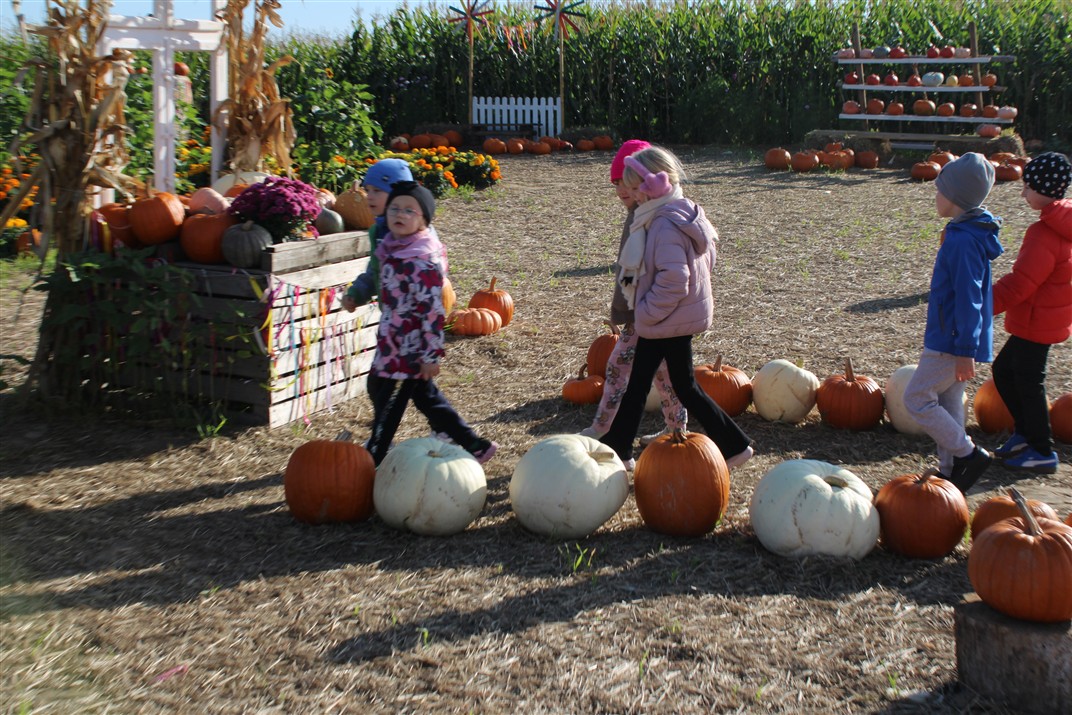 W dniu 26 września dzieci z grupy „Biedronek” wyjechały na wycieczkę do Kopaszyna, na farmę dyń „Dyniowato”. Na początku spotkania dowiedziały się, jak wiele gatunków dyń zgromadzonych jest na farmie, jak one wyglądają i które z nich są przeznaczone do jedzenia, a które nie. Obejrzały pole, na którym urosły dynie i poznały wiadomości na temat warunków potrzebnych dyniom do wzrostu. Podczas warsztatów miały okazję obejrzeć ogromne dynie także od środka i wybrać z nich pestki, które zabrały do domu. Najatrakcyjniejsze jednak okazały się zabawy ruchowe wśród setek dyń, w tym wędrowanie labiryntem wśród kukurydzy i wielu dyń, czy też zabawy na dyniowym placu zabaw.