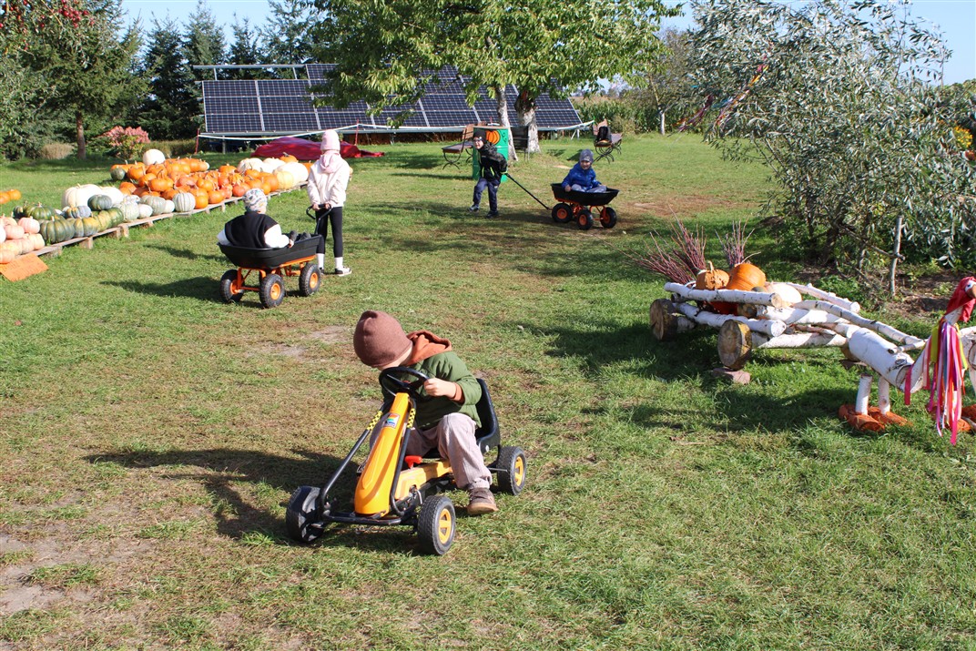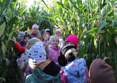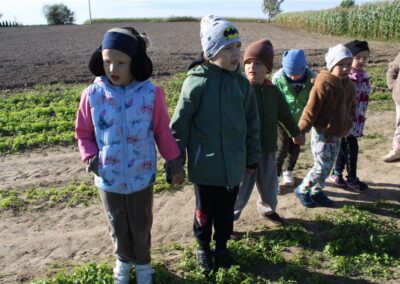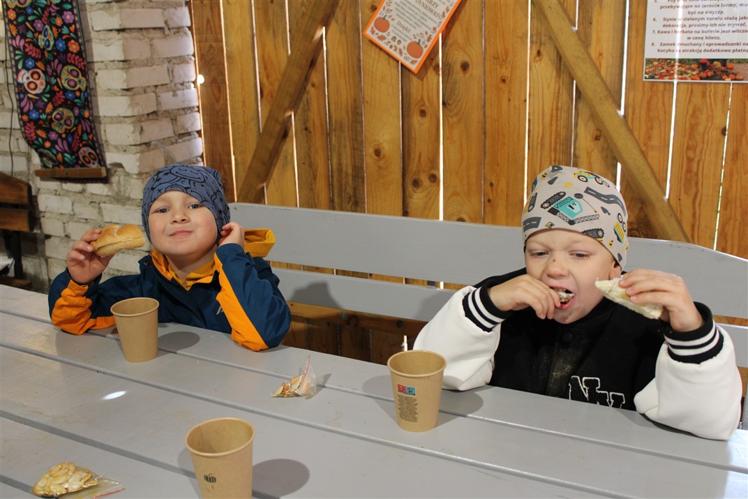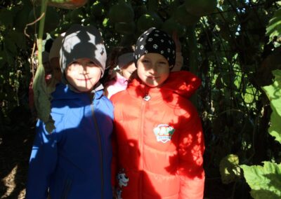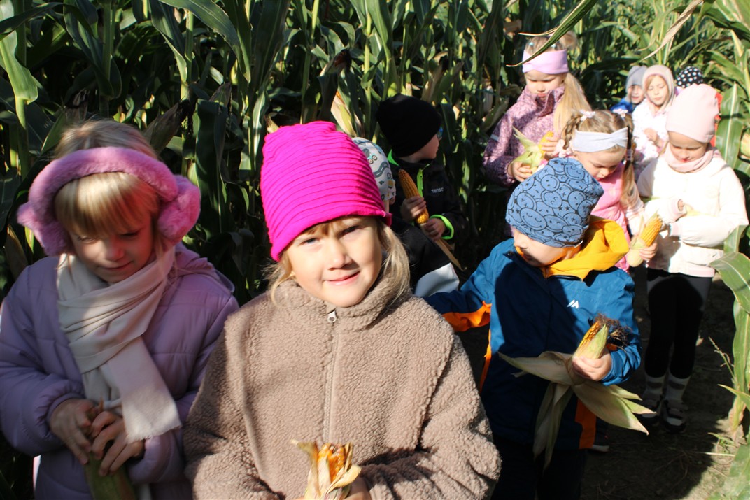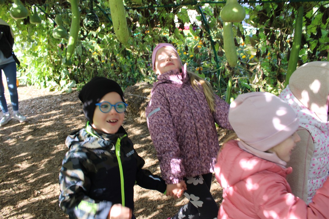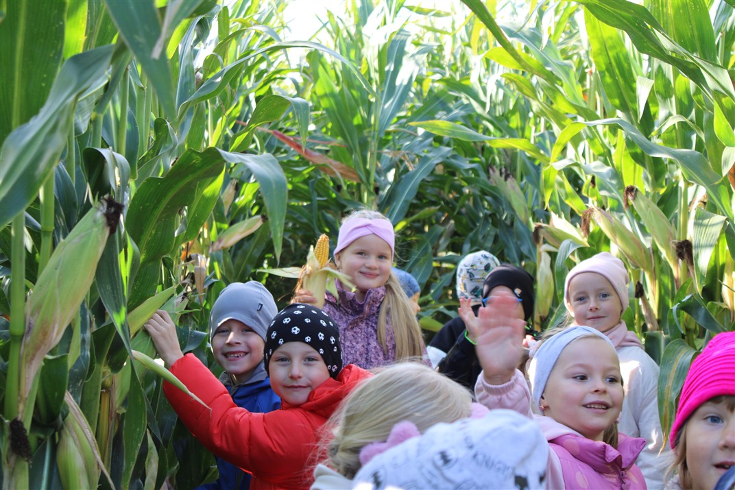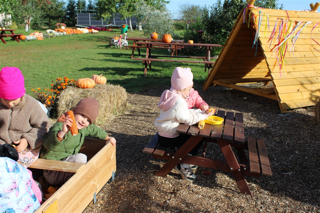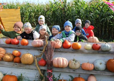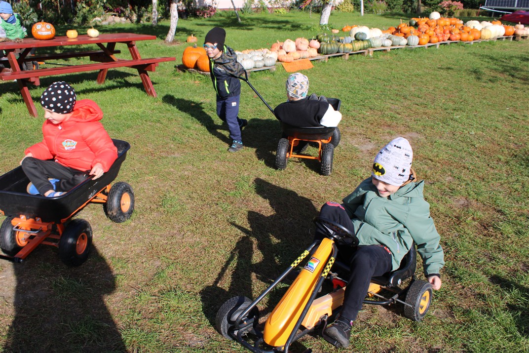 W dniu 26 września dzieci z grupy „Biedronek” wyjechały na wycieczkę do Kopaszyna, na farmę dyń „Dyniowato”. Na początku spotkania dowiedziały się, jak wiele gatunków dyń zgromadzonych jest na farmie, jak one wyglądają i które z nich są przeznaczone do jedzenia, a które nie. Obejrzały pole, na którym urosły dynie i poznały wiadomości na temat warunków potrzebnych dyniom do wzrostu. Podczas warsztatów miały okazję obejrzeć ogromne dynie także od środka i wybrać z nich pestki, które zabrały do domu. Najatrakcyjniejsze jednak okazały się zabawy ruchowe wśród setek dyń, w tym wędrowanie labiryntem wśród kukurydzy i wielu dyń, czy też zabawy na dyniowym placu zabaw.