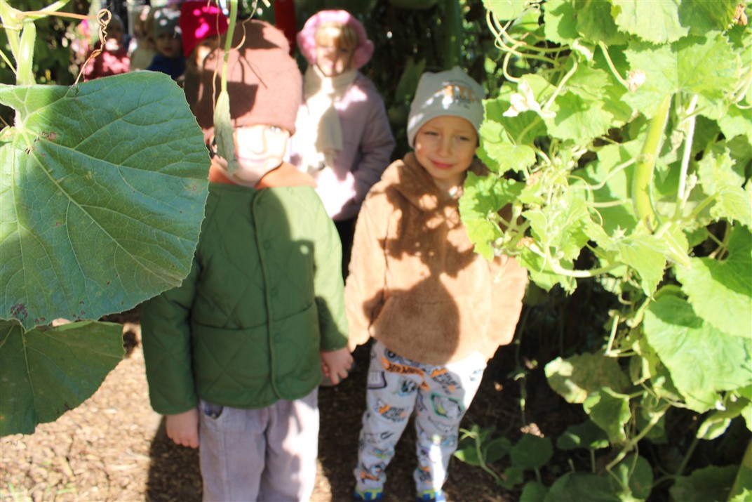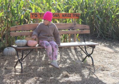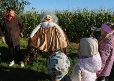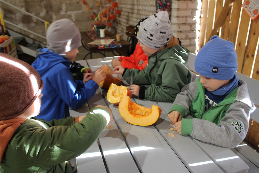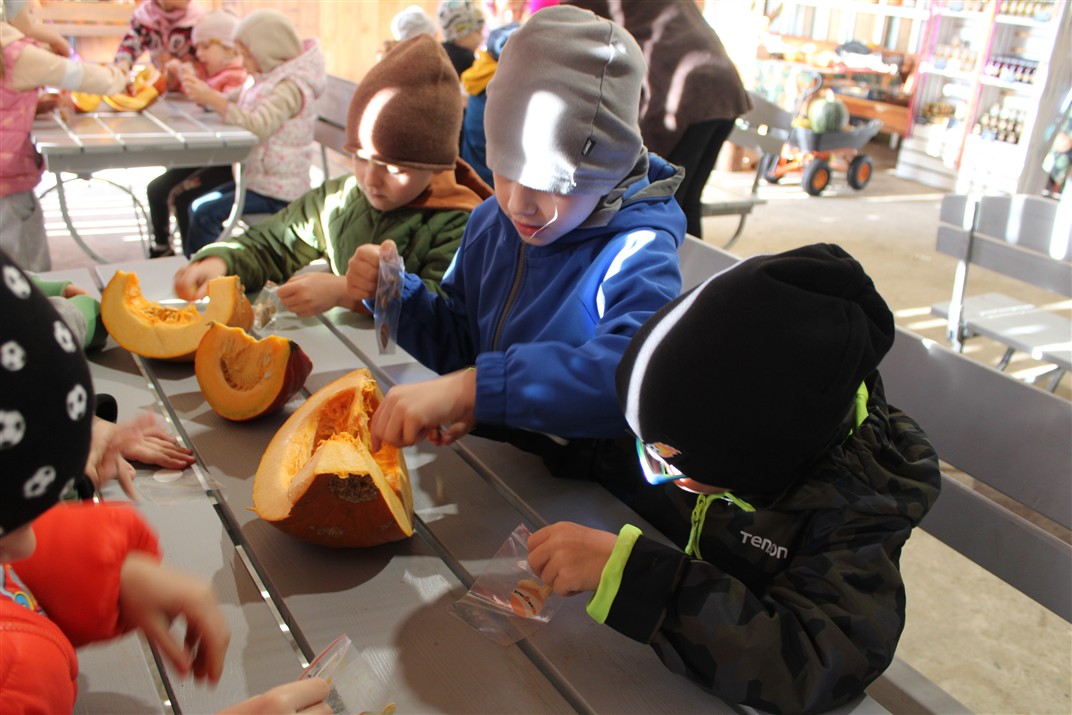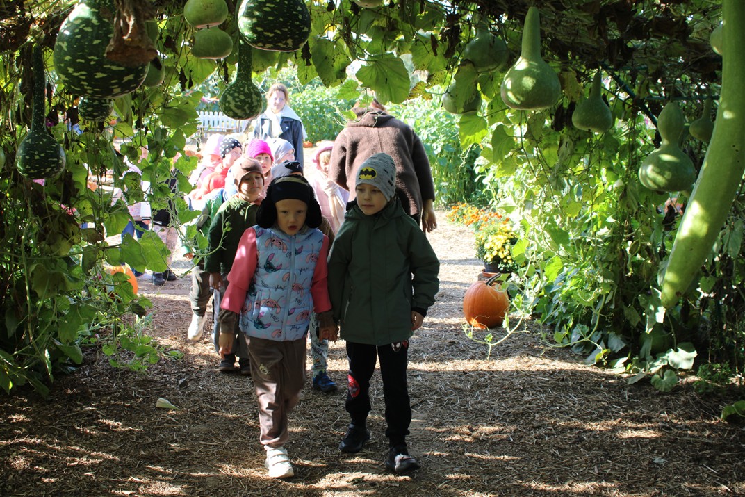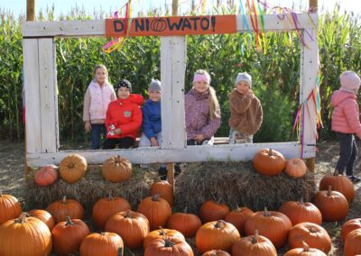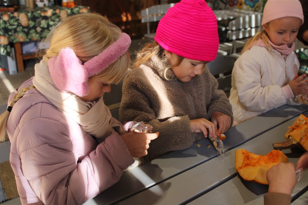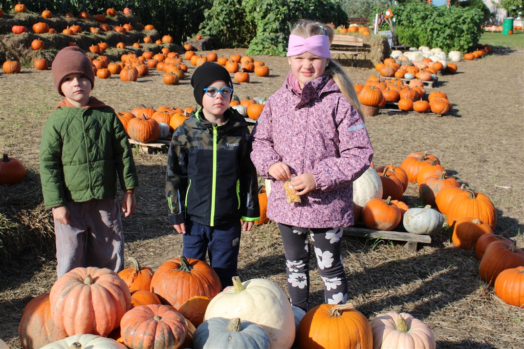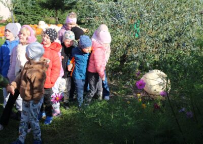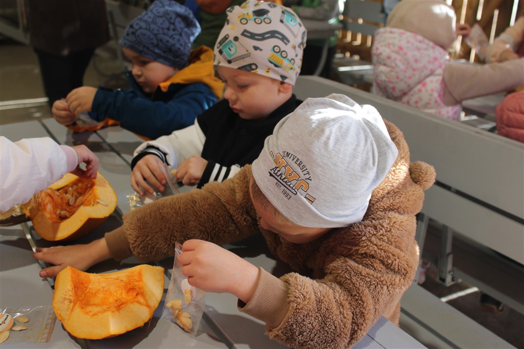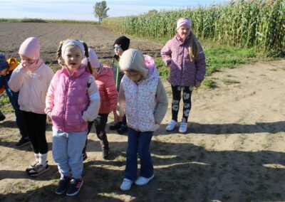W dniu 26 września dzieci z grupy „Biedronek” wyjechały na wycieczkę do Kopaszyna, na farmę dyń „Dyniowato”. Na początku spotkania dowiedziały się, jak wiele gatunków dyń zgromadzonych jest na farmie, jak one wyglądają i które z nich są przeznaczone do jedzenia, a które nie. Obejrzały pole, na którym urosły dynie i poznały wiadomości na temat warunków potrzebnych dyniom do wzrostu. Podczas warsztatów miały okazję obejrzeć ogromne dynie także od środka i wybrać z nich pestki, które zabrały do domu. Najatrakcyjniejsze jednak okazały się zabawy ruchowe wśród setek dyń, w tym wędrowanie labiryntem wśród kukurydzy i wielu dyń, czy też zabawy na dyniowym placu zabaw.