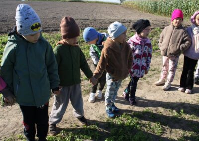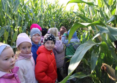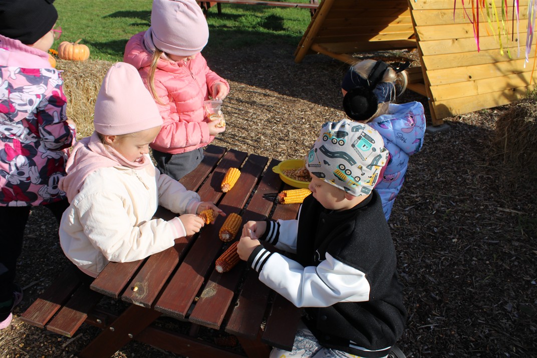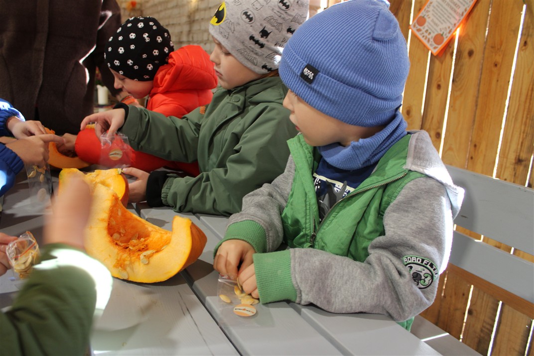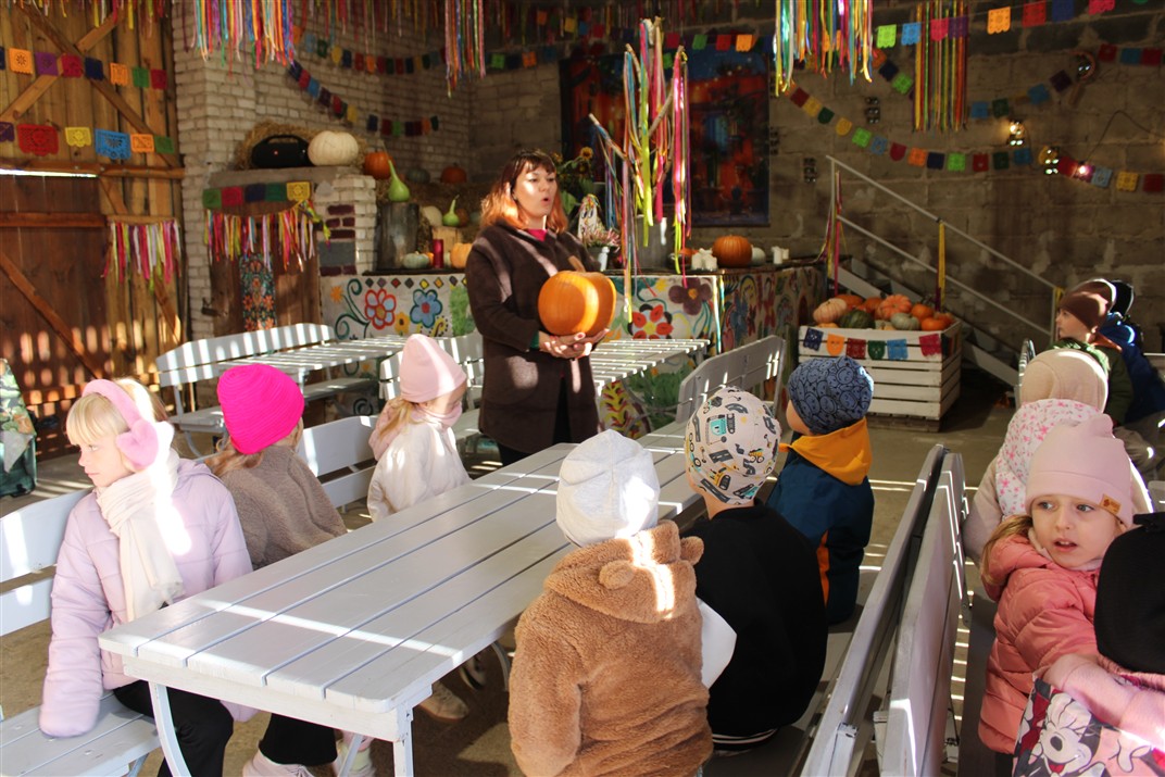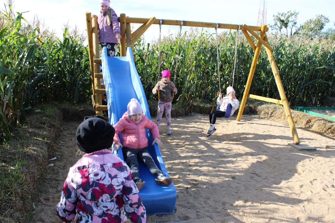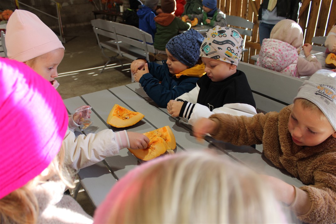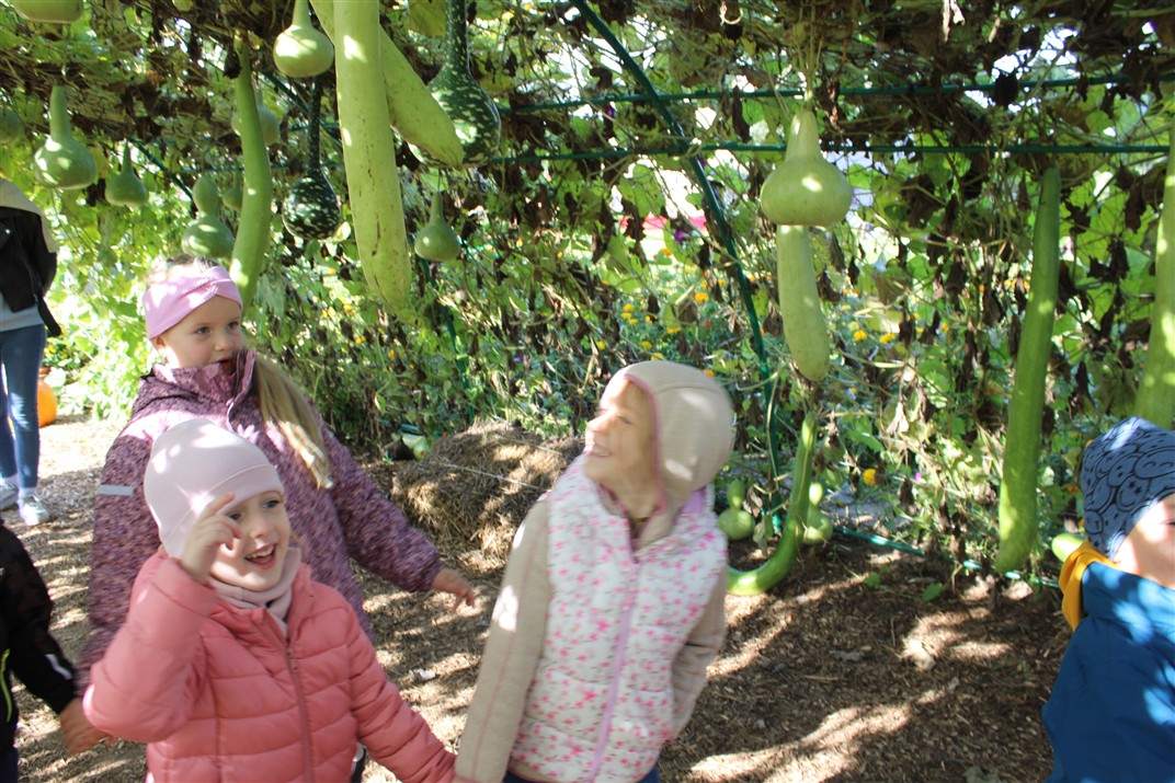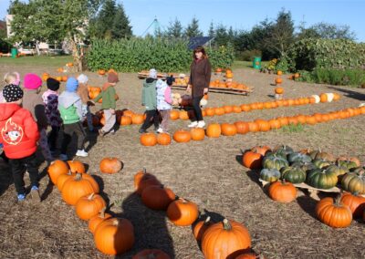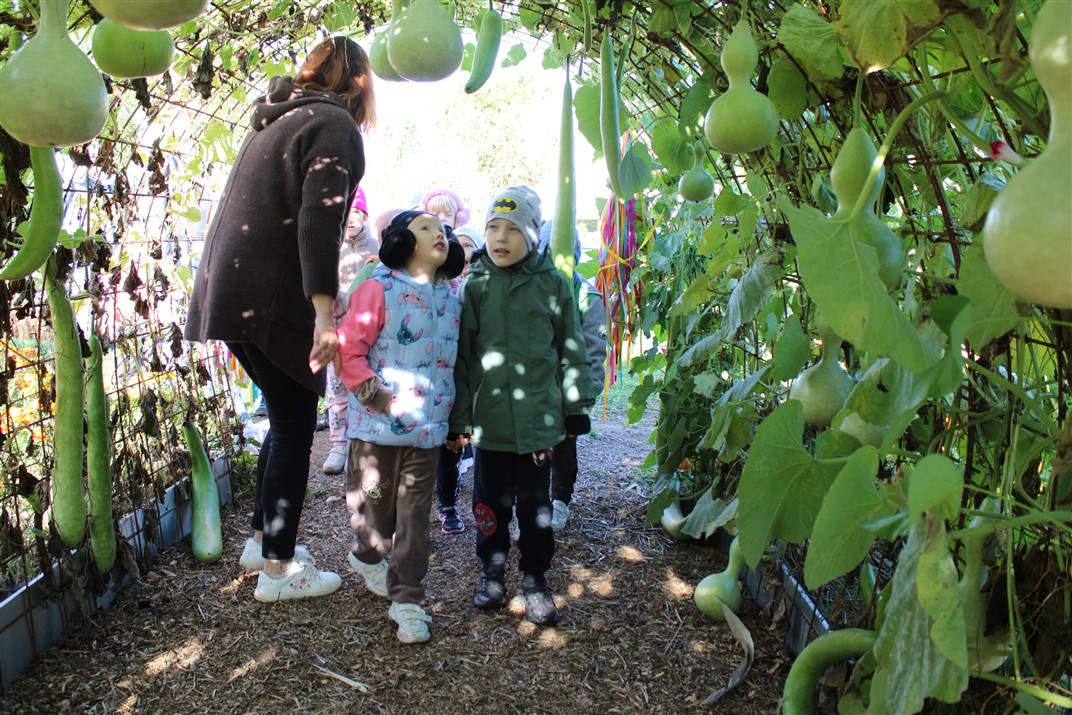 W dniu 26 września dzieci z grupy „Biedronek” wyjechały na wycieczkę do Kopaszyna, na farmę dyń „Dyniowato”. Na początku spotkania dowiedziały się, jak wiele gatunków dyń zgromadzonych jest na farmie, jak one wyglądają i które z nich są przeznaczone do jedzenia, a które nie. Obejrzały pole, na którym urosły dynie i poznały wiadomości na temat warunków potrzebnych dyniom do wzrostu. Podczas warsztatów miały okazję obejrzeć ogromne dynie także od środka i wybrać z nich pestki, które zabrały do domu. Najatrakcyjniejsze jednak okazały się zabawy ruchowe wśród setek dyń, w tym wędrowanie labiryntem wśród kukurydzy i wielu dyń, czy też zabawy na dyniowym placu zabaw.