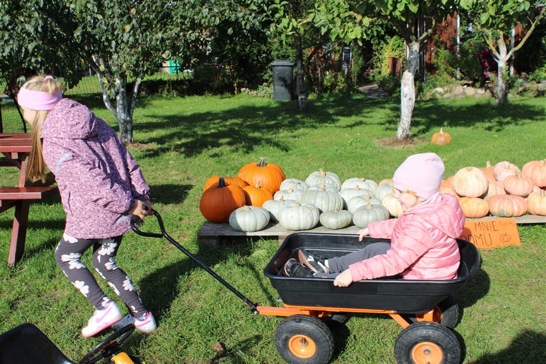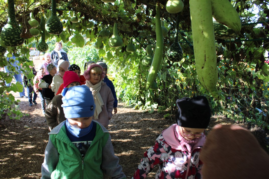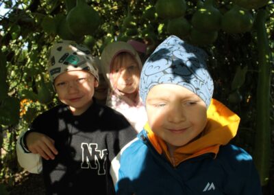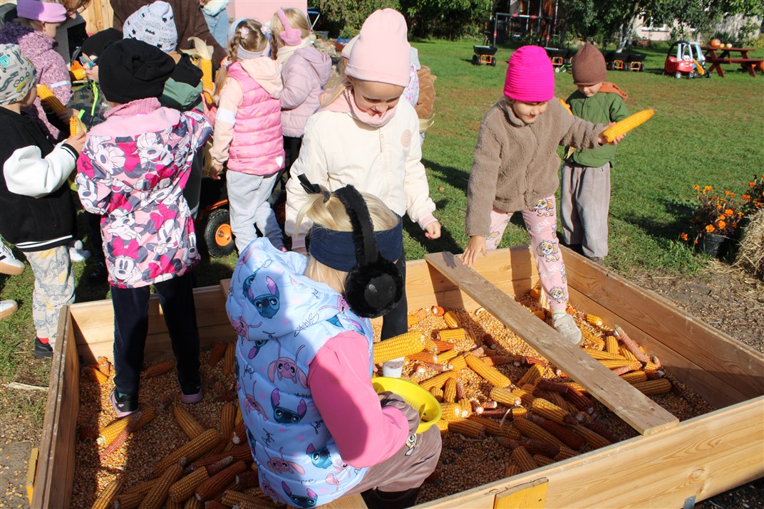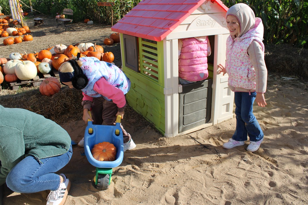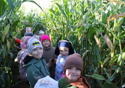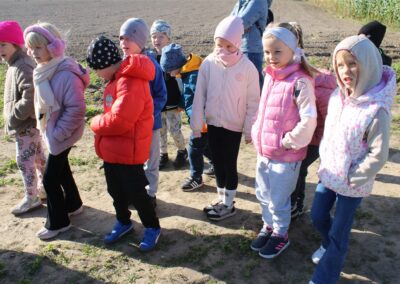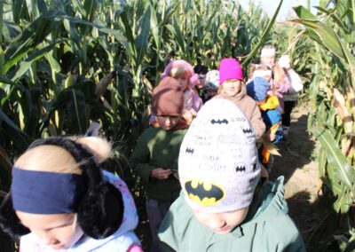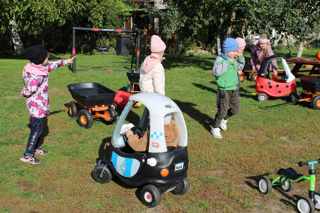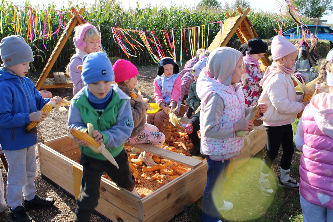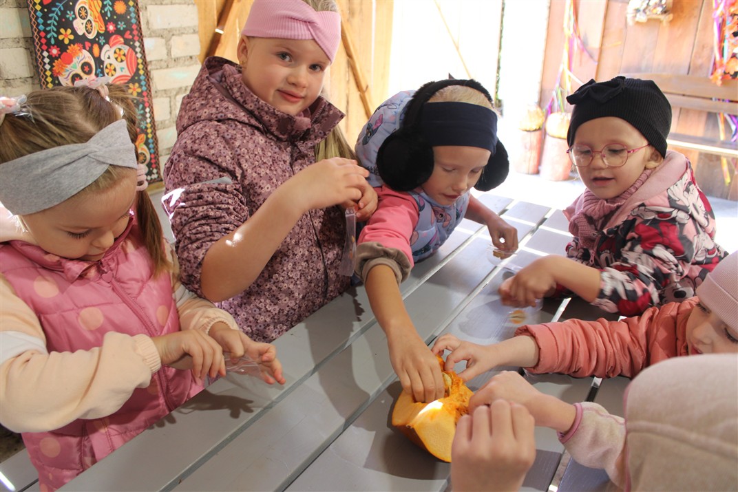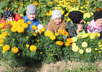 W dniu 26 września dzieci z grupy „Biedronek” wyjechały na wycieczkę do Kopaszyna, na farmę dyń „Dyniowato”. Na początku spotkania dowiedziały się, jak wiele gatunków dyń zgromadzonych jest na farmie, jak one wyglądają i które z nich są przeznaczone do jedzenia, a które nie. Obejrzały pole, na którym urosły dynie i poznały wiadomości na temat warunków potrzebnych dyniom do wzrostu. Podczas warsztatów miały okazję obejrzeć ogromne dynie także od środka i wybrać z nich pestki, które zabrały do domu. Najatrakcyjniejsze jednak okazały się zabawy ruchowe wśród setek dyń, w tym wędrowanie labiryntem wśród kukurydzy i wielu dyń, czy też zabawy na dyniowym placu zabaw.
