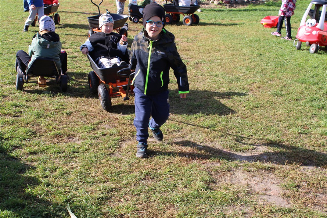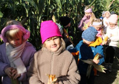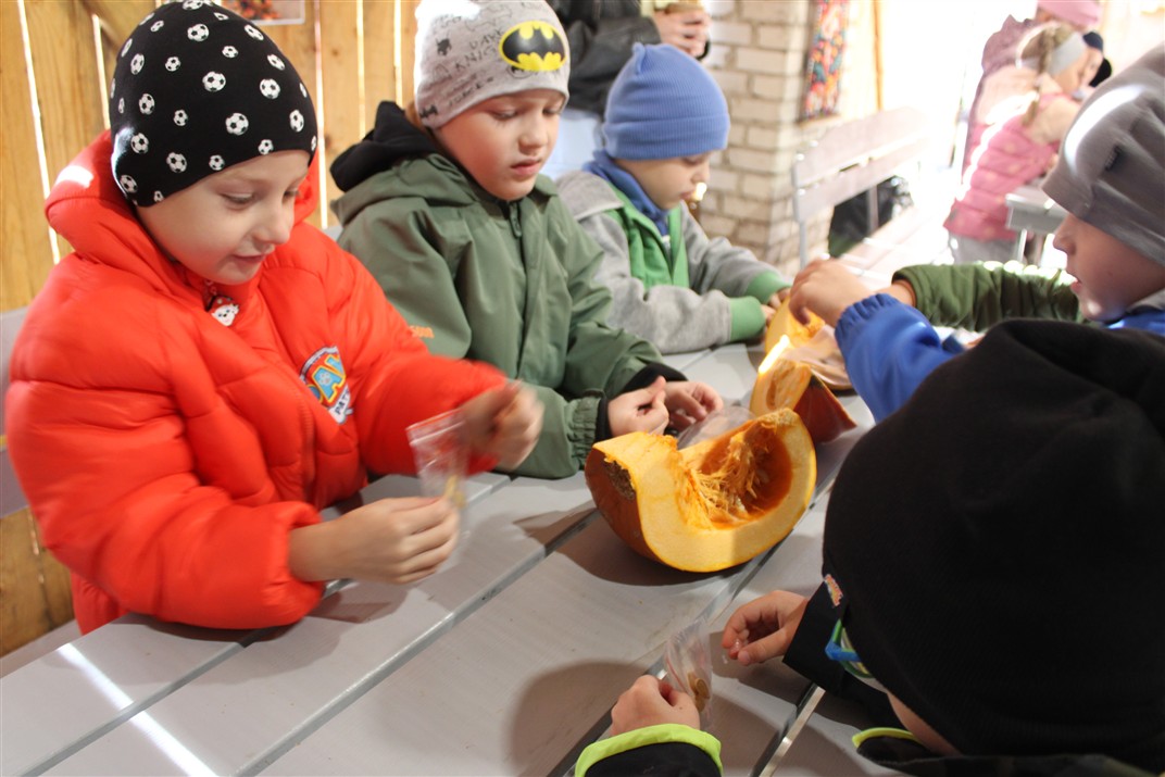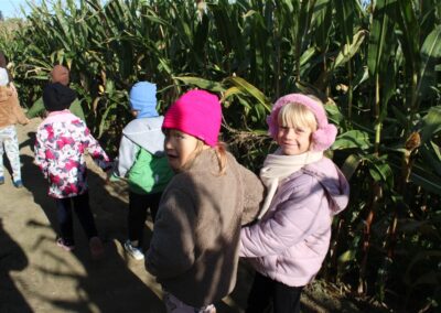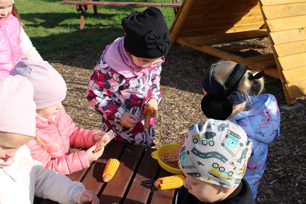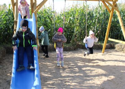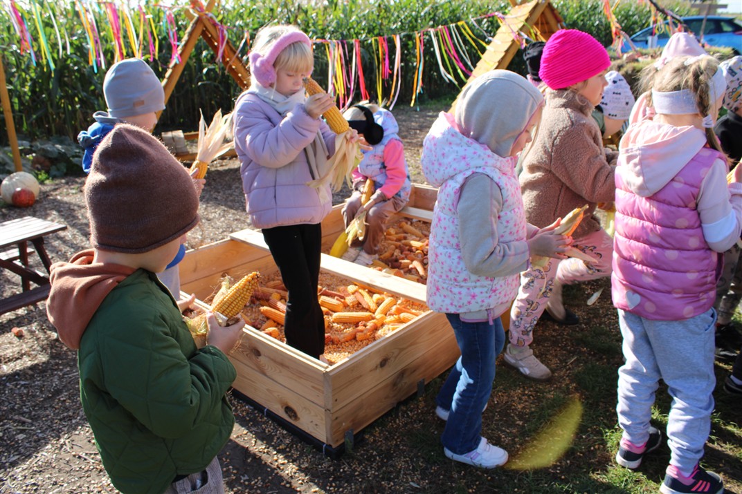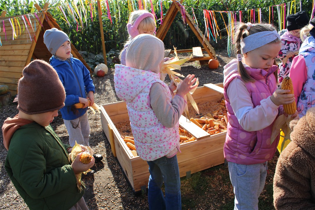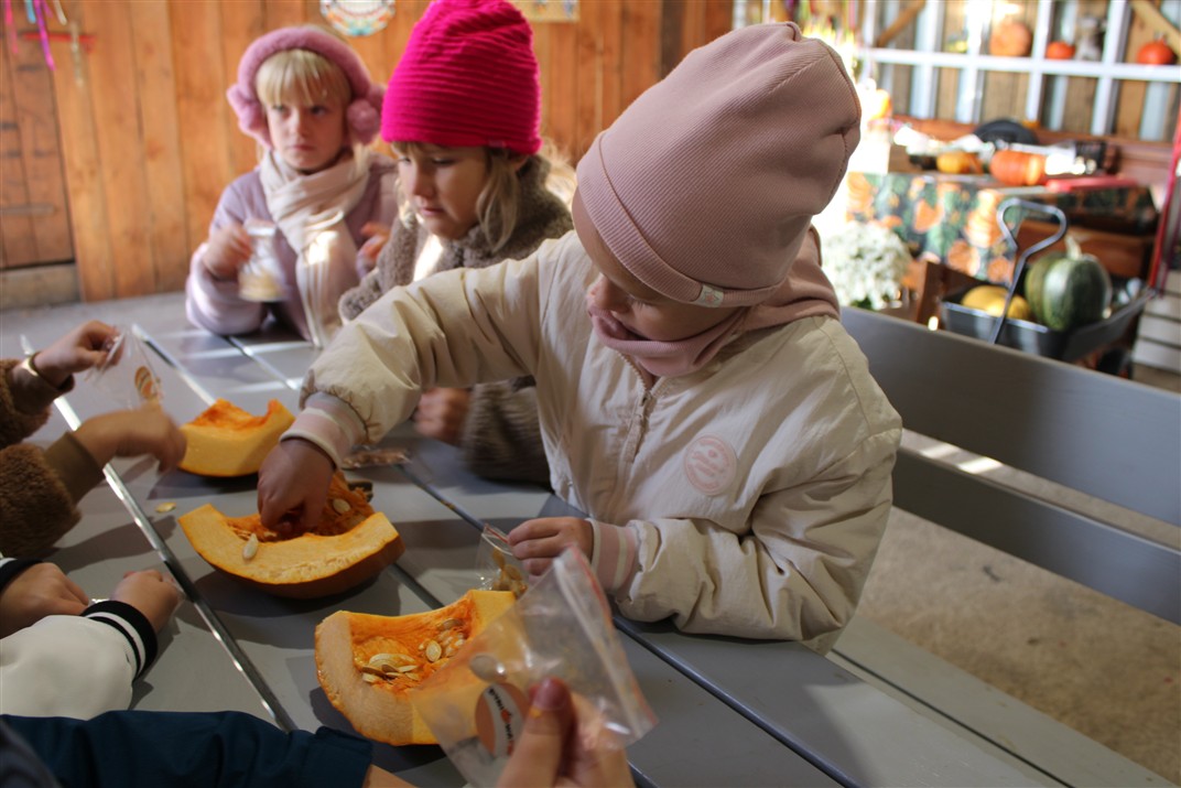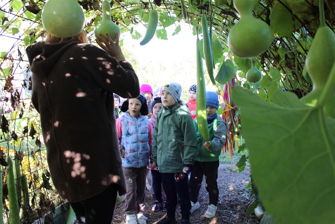 W dniu 26 września dzieci z grupy „Biedronek” wyjechały na wycieczkę do Kopaszyna, na farmę dyń „Dyniowato”. Na początku spotkania dowiedziały się, jak wiele gatunków dyń zgromadzonych jest na farmie, jak one wyglądają i które z nich są przeznaczone do jedzenia, a które nie. Obejrzały pole, na którym urosły dynie i poznały wiadomości na temat warunków potrzebnych dyniom do wzrostu. Podczas warsztatów miały okazję obejrzeć ogromne dynie także od środka i wybrać z nich pestki, które zabrały do domu. Najatrakcyjniejsze jednak okazały się zabawy ruchowe wśród setek dyń, w tym wędrowanie labiryntem wśród kukurydzy i wielu dyń, czy też zabawy na dyniowym placu zabaw.