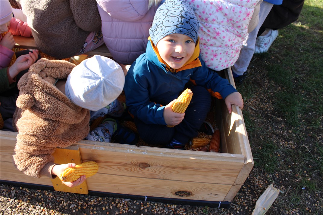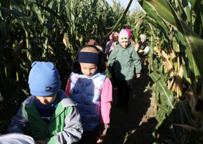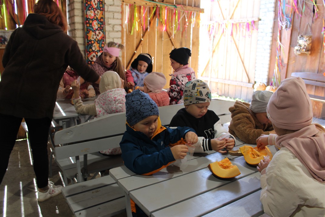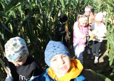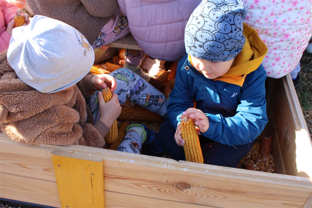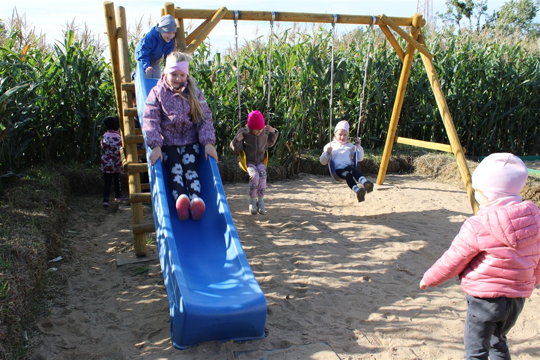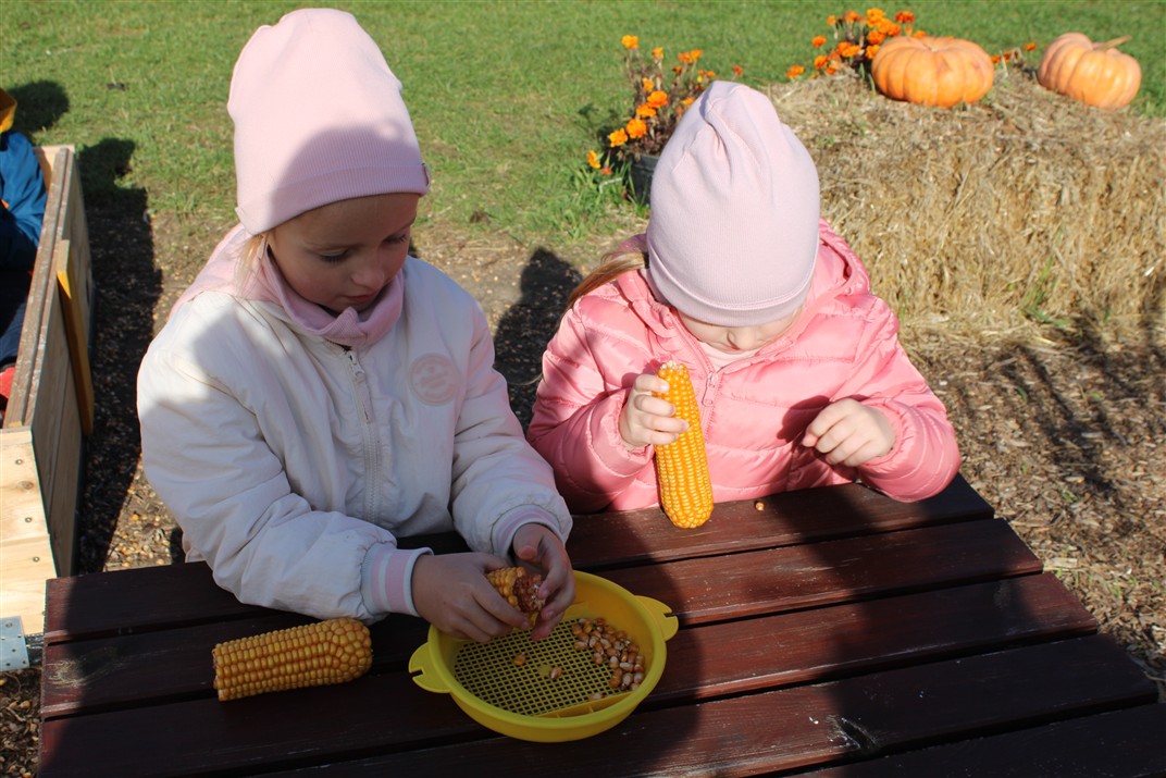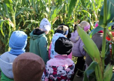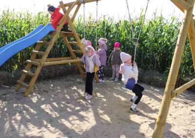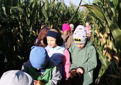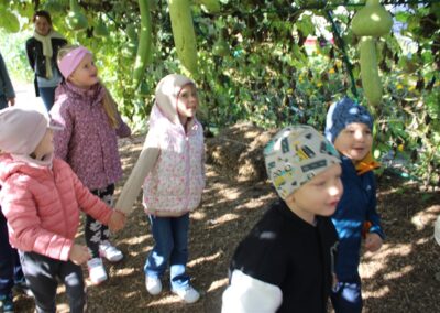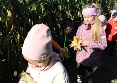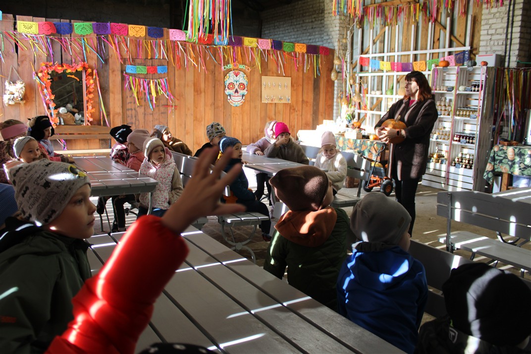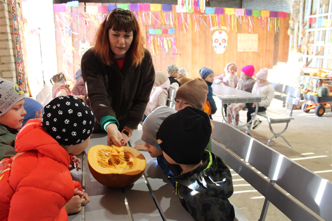 W dniu 26 września dzieci z grupy „Biedronek” wyjechały na wycieczkę do Kopaszyna, na farmę dyń „Dyniowato”. Na początku spotkania dowiedziały się, jak wiele gatunków dyń zgromadzonych jest na farmie, jak one wyglądają i które z nich są przeznaczone do jedzenia, a które nie. Obejrzały pole, na którym urosły dynie i poznały wiadomości na temat warunków potrzebnych dyniom do wzrostu. Podczas warsztatów miały okazję obejrzeć ogromne dynie także od środka i wybrać z nich pestki, które zabrały do domu. Najatrakcyjniejsze jednak okazały się zabawy ruchowe wśród setek dyń, w tym wędrowanie labiryntem wśród kukurydzy i wielu dyń, czy też zabawy na dyniowym placu zabaw.