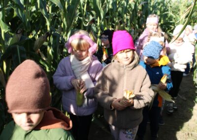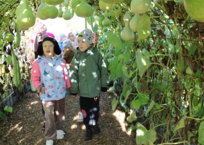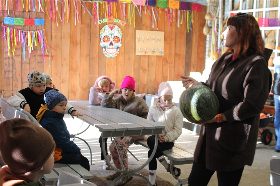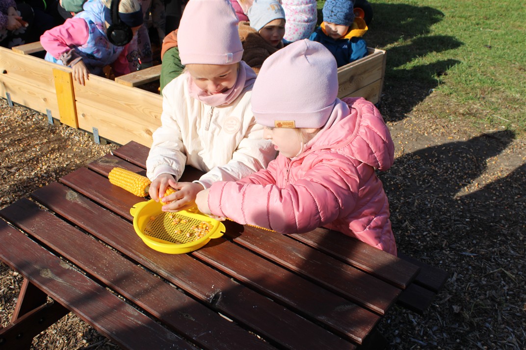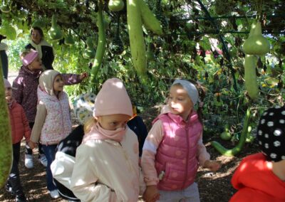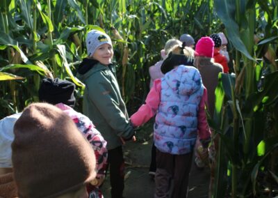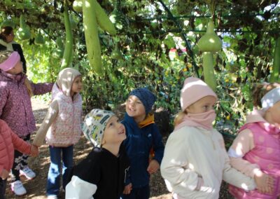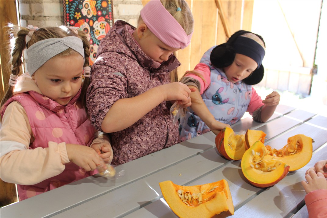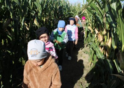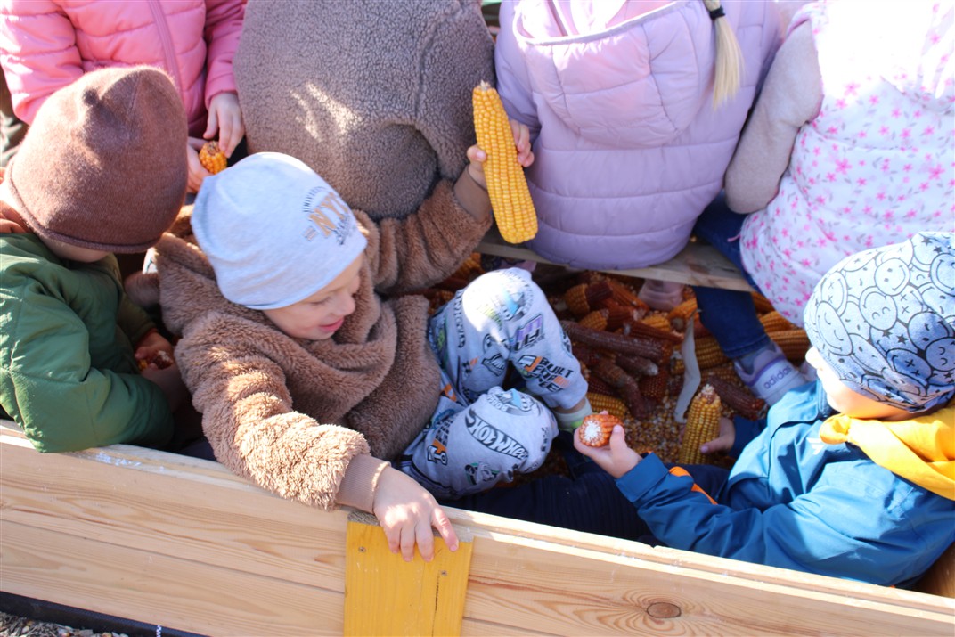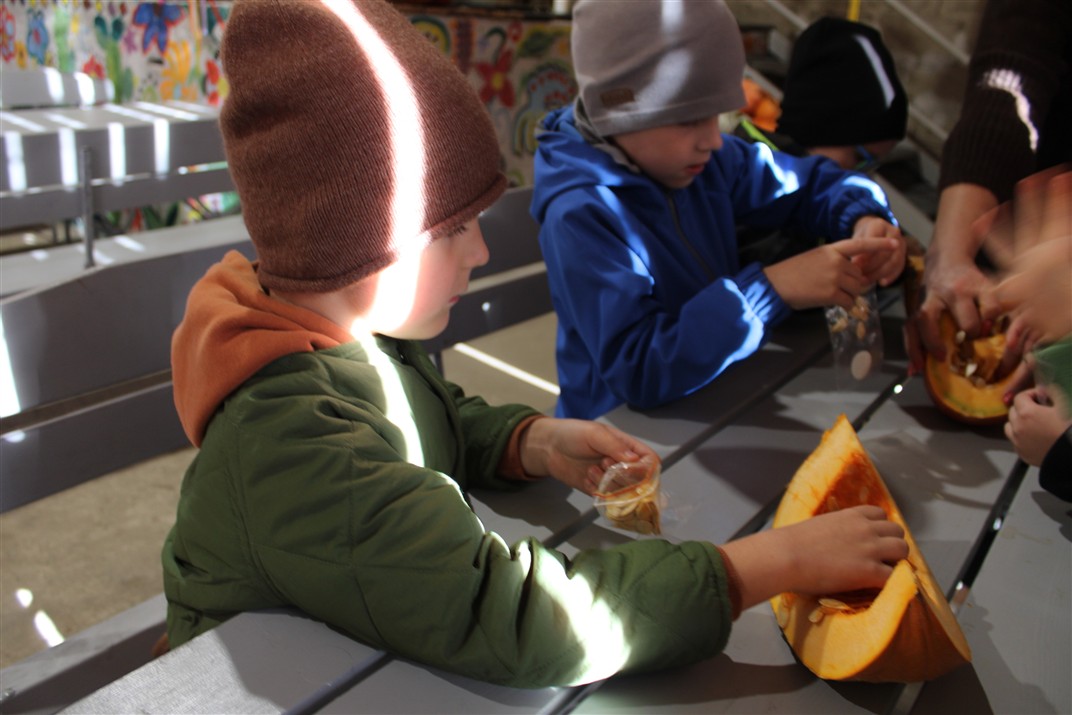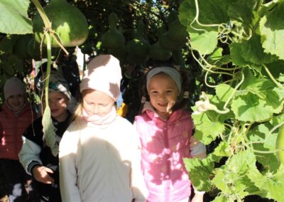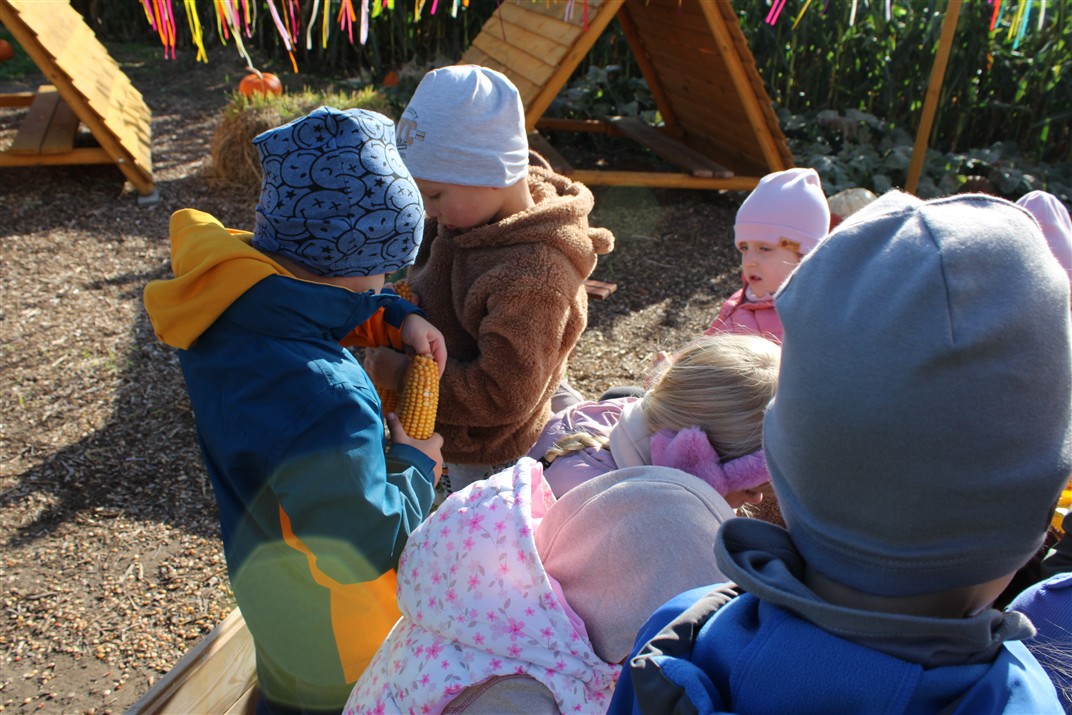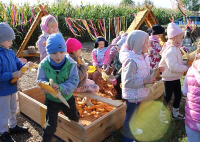 W dniu 26 września dzieci z grupy „Biedronek” wyjechały na wycieczkę do Kopaszyna, na farmę dyń „Dyniowato”. Na początku spotkania dowiedziały się, jak wiele gatunków dyń zgromadzonych jest na farmie, jak one wyglądają i które z nich są przeznaczone do jedzenia, a które nie. Obejrzały pole, na którym urosły dynie i poznały wiadomości na temat warunków potrzebnych dyniom do wzrostu. Podczas warsztatów miały okazję obejrzeć ogromne dynie także od środka i wybrać z nich pestki, które zabrały do domu. Najatrakcyjniejsze jednak okazały się zabawy ruchowe wśród setek dyń, w tym wędrowanie labiryntem wśród kukurydzy i wielu dyń, czy też zabawy na dyniowym placu zabaw.
