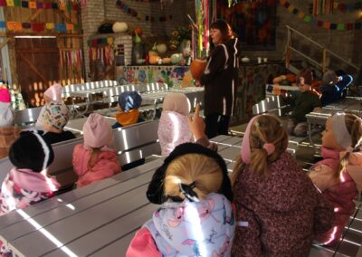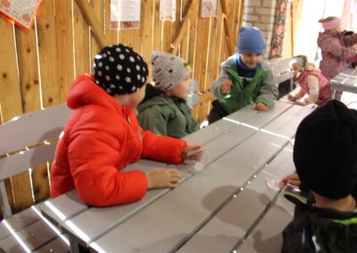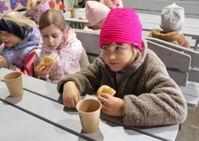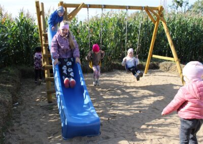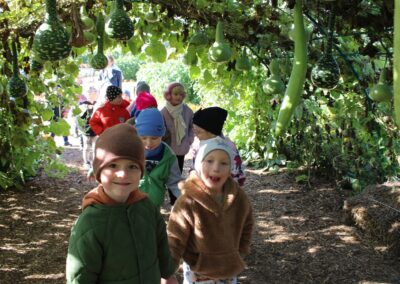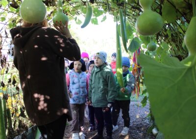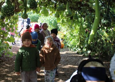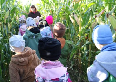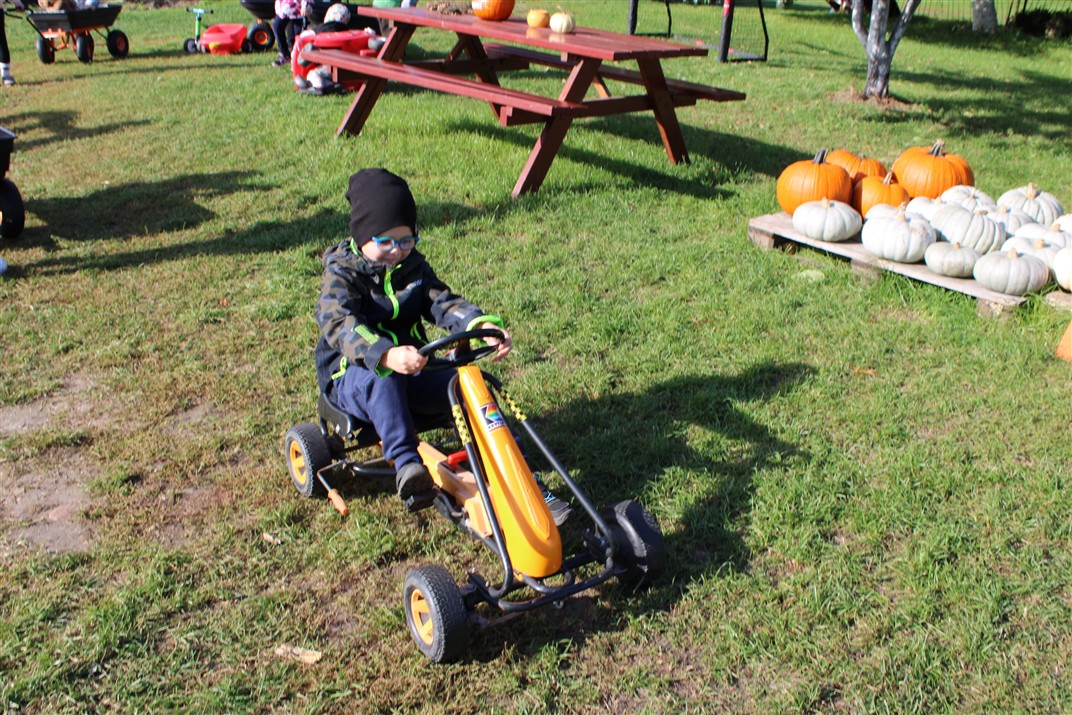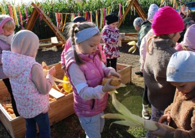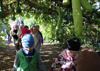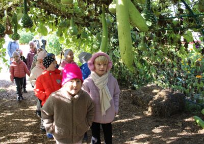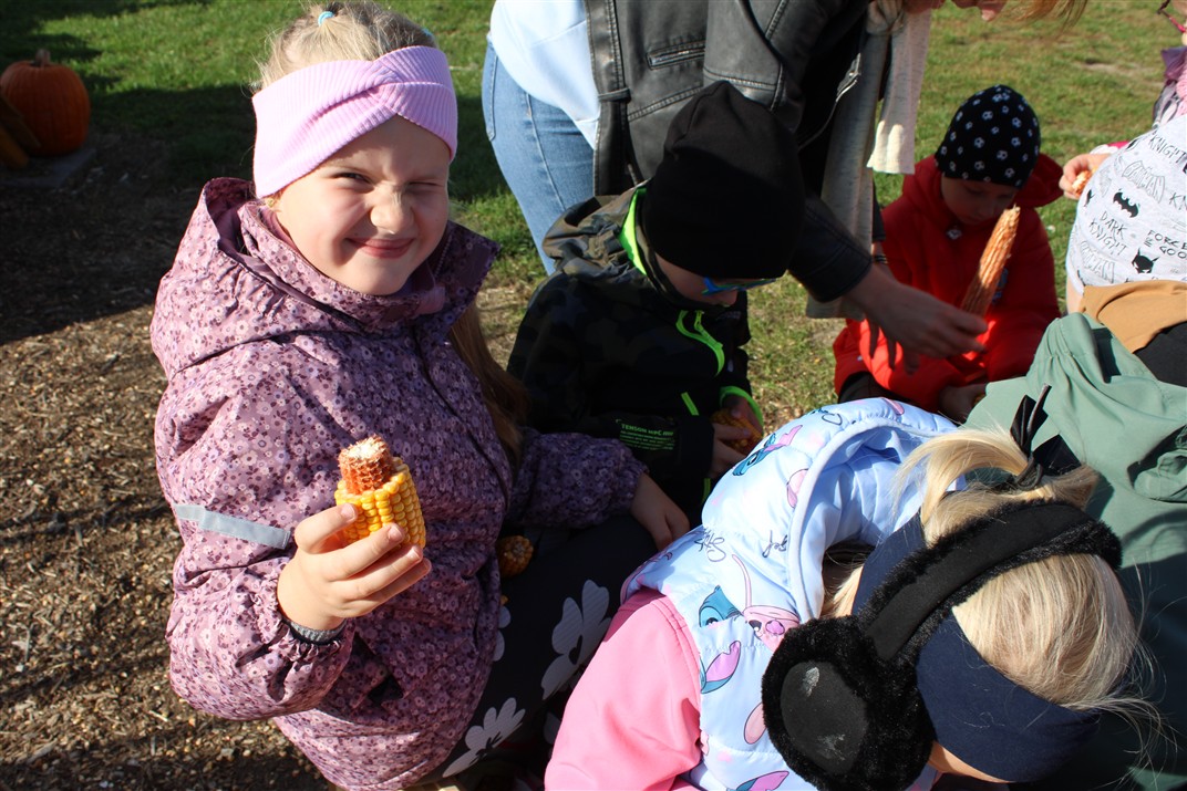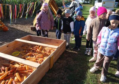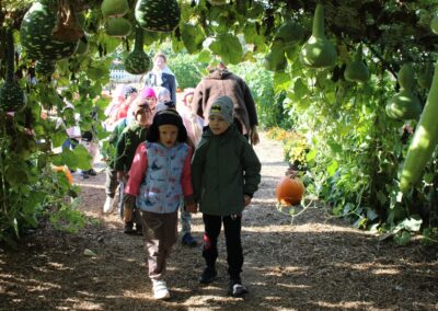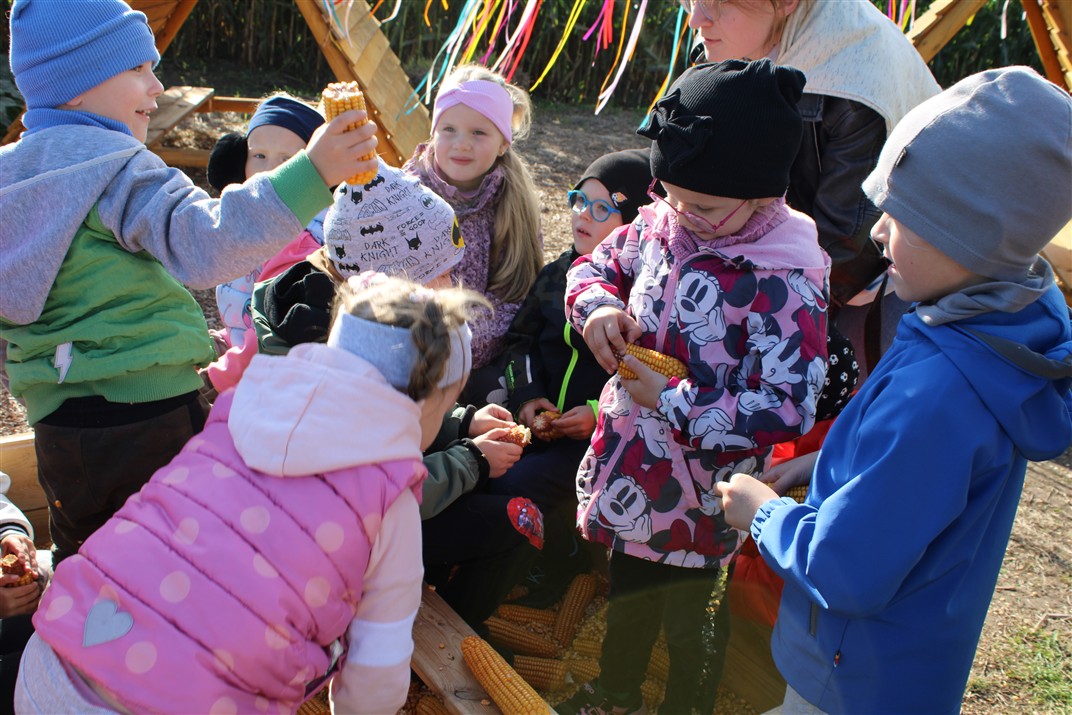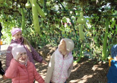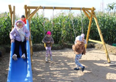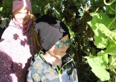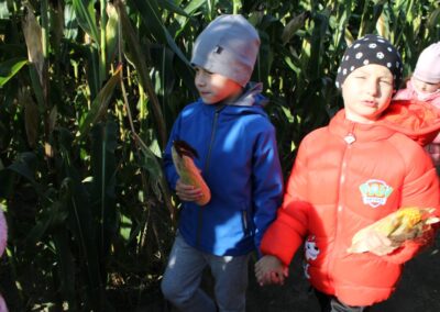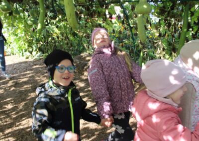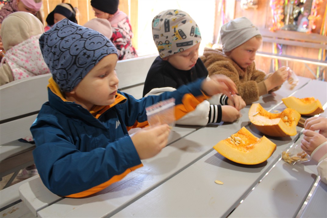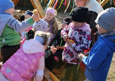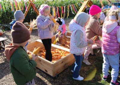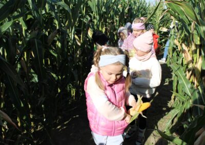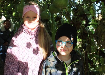 W dniu 26 września dzieci z grupy „Biedronek” wyjechały na wycieczkę do Kopaszyna, na farmę dyń „Dyniowato”. Na początku spotkania dowiedziały się, jak wiele gatunków dyń zgromadzonych jest na farmie, jak one wyglądają i które z nich są przeznaczone do jedzenia, a które nie. Obejrzały pole, na którym urosły dynie i poznały wiadomości na temat warunków potrzebnych dyniom do wzrostu. Podczas warsztatów miały okazję obejrzeć ogromne dynie także od środka i wybrać z nich pestki, które zabrały do domu. Najatrakcyjniejsze jednak okazały się zabawy ruchowe wśród setek dyń, w tym wędrowanie labiryntem wśród kukurydzy i wielu dyń, czy też zabawy na dyniowym placu zabaw.