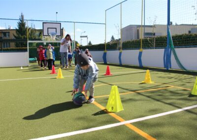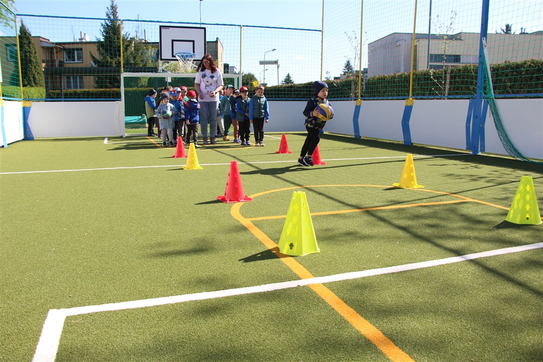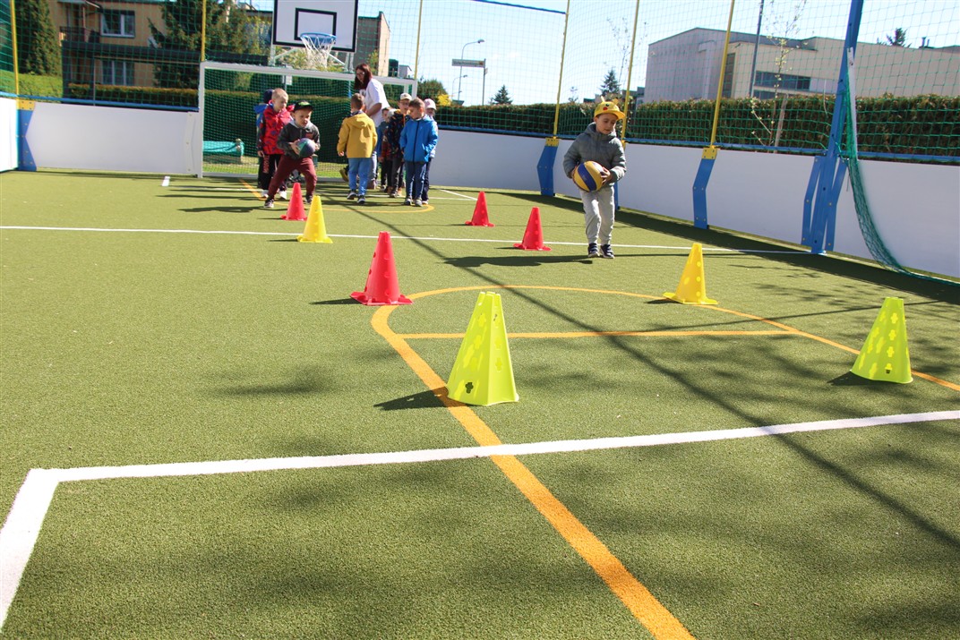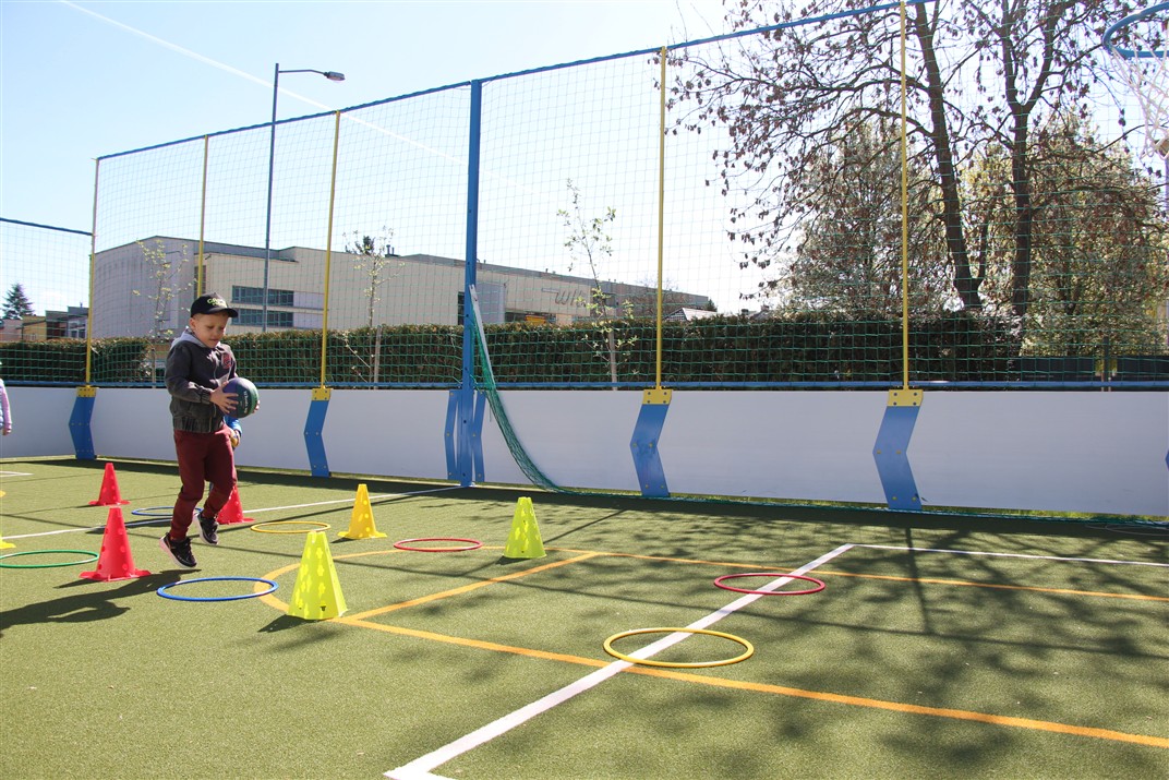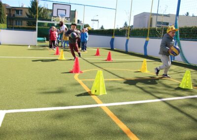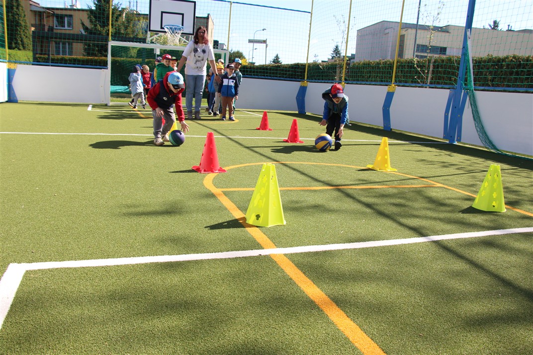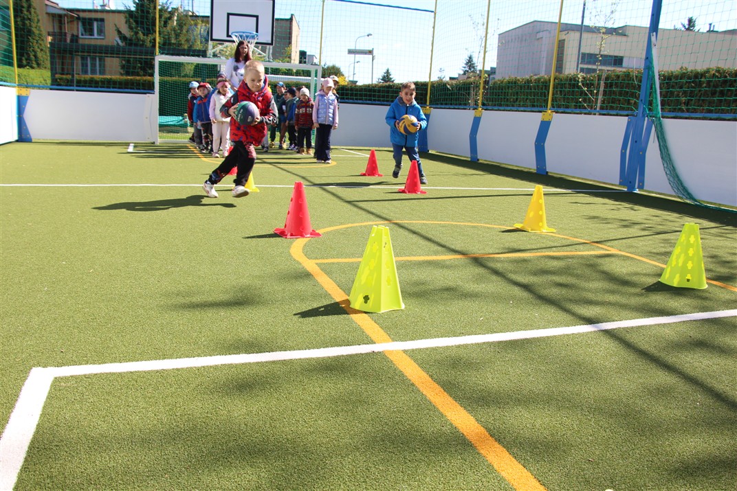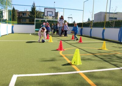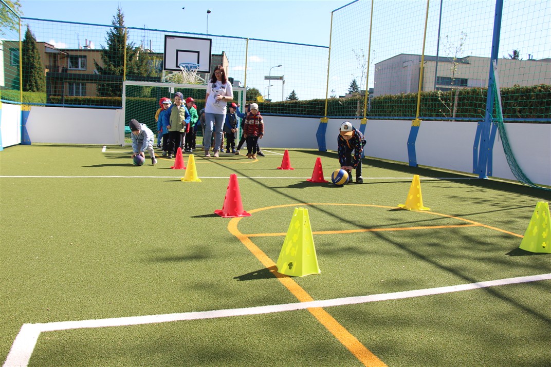 W piątek odbyło się kolejne kółko zainteresowań w grupie Motyli. Tym razem korzystając z ładnej pogody wybraliśmy się na nasze przedszkolne boisko. Zajęcia rozpoczęliśmy od rozgrzewki. Następnie dzieci doskonaliły umiejętność współpracy i współzawodnictwa podczas drużynowych zadań na torze przeszkód z piłką. Na zakończenie uczyliśmy się strzelać do bramki