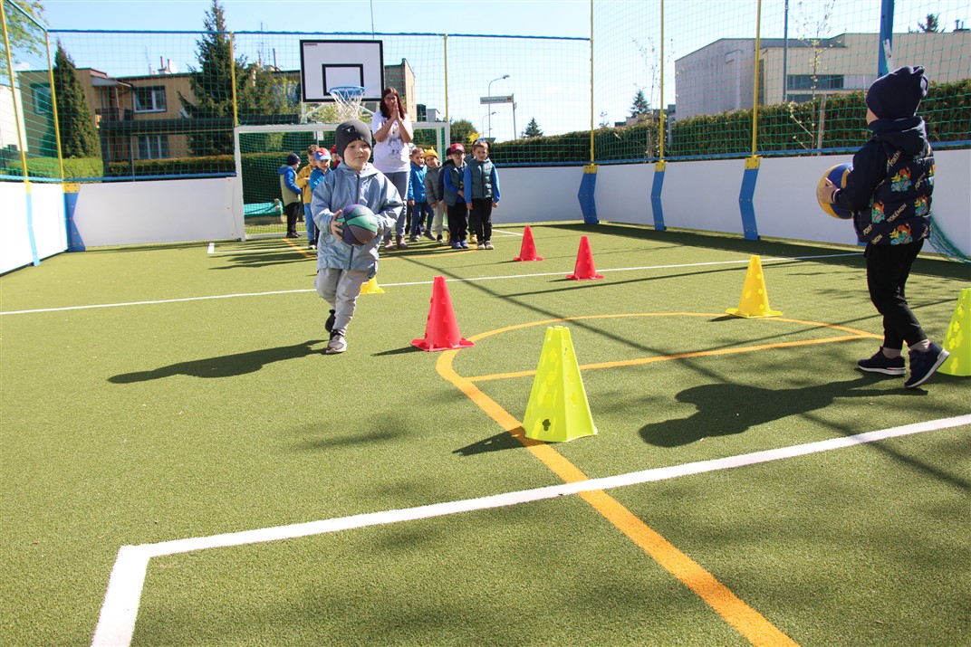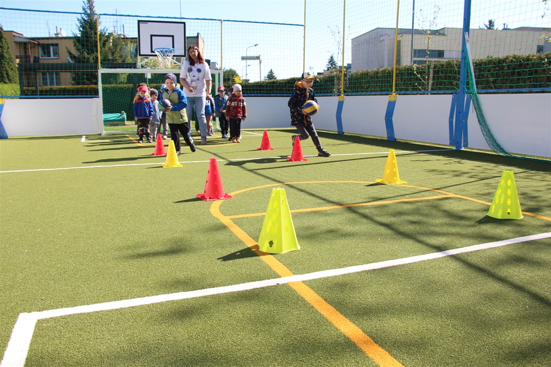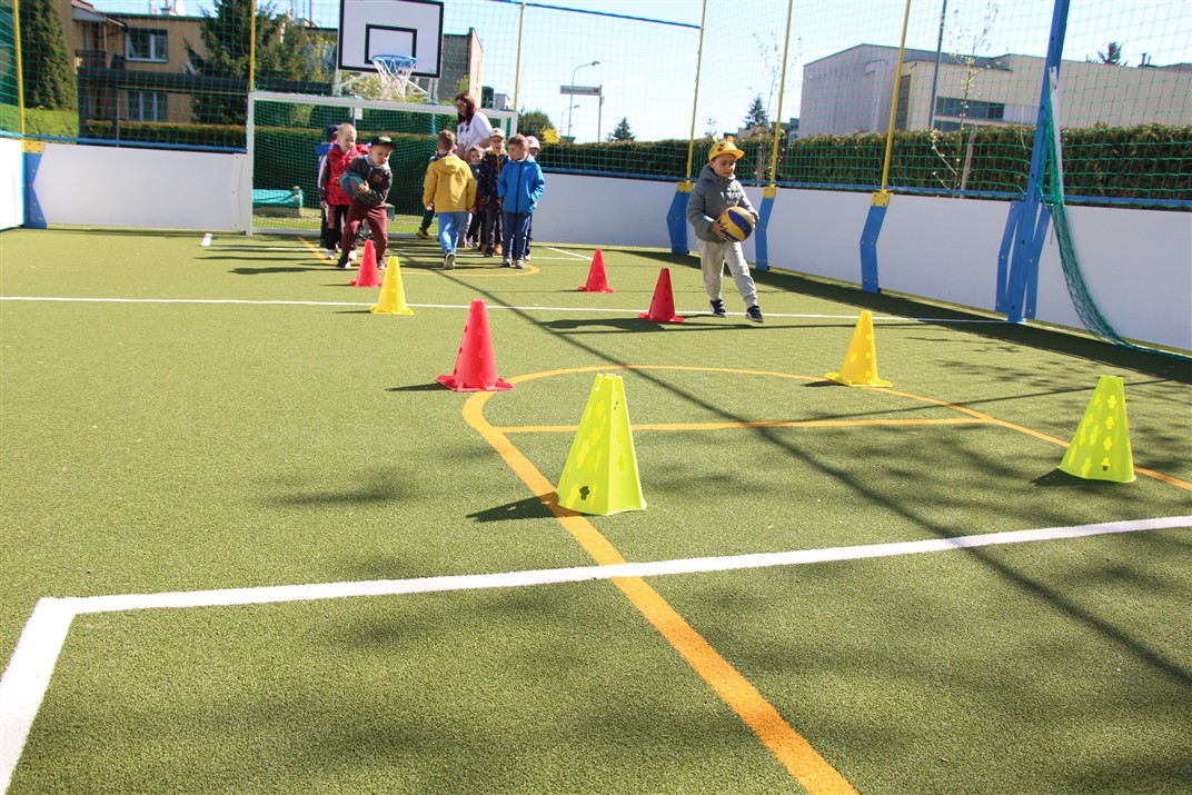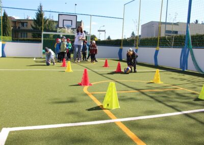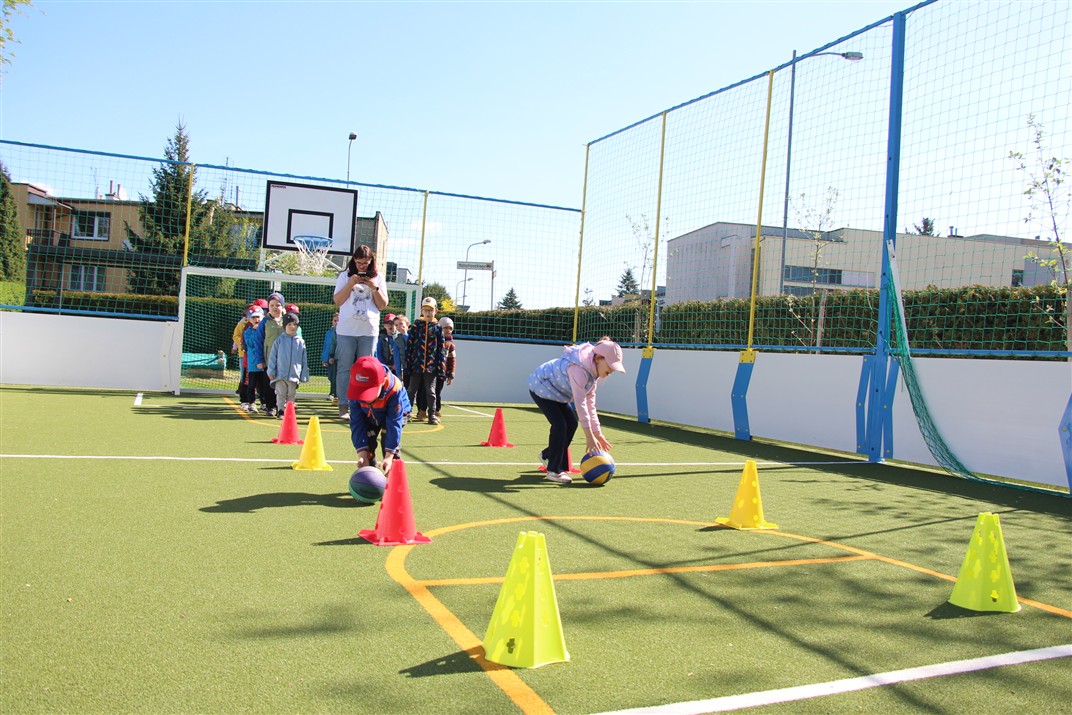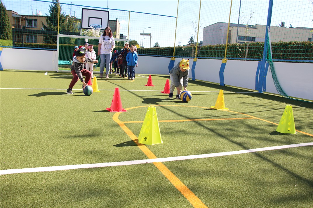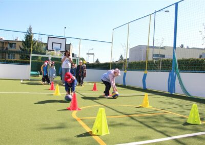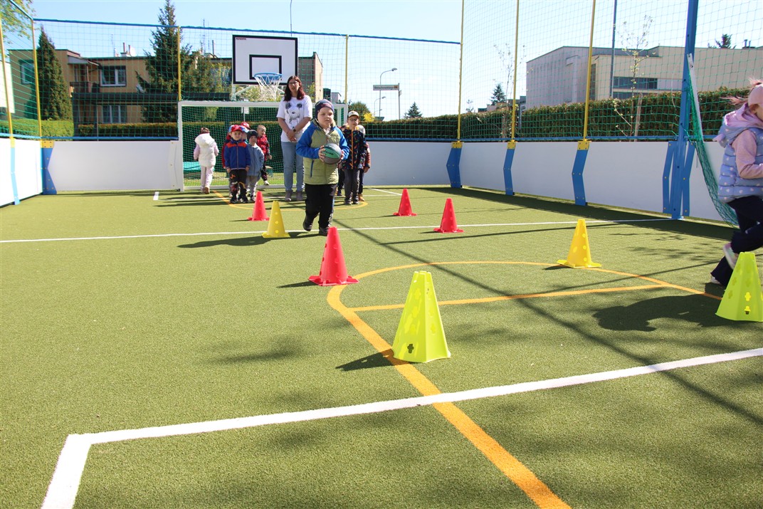 W piątek odbyło się kolejne kółko zainteresowań w grupie Motyli. Tym razem korzystając z ładnej pogody wybraliśmy się na nasze przedszkolne boisko. Zajęcia rozpoczęliśmy od rozgrzewki. Następnie dzieci doskonaliły umiejętność współpracy i współzawodnictwa podczas drużynowych zadań na torze przeszkód z piłką. Na zakończenie uczyliśmy się strzelać do bramki