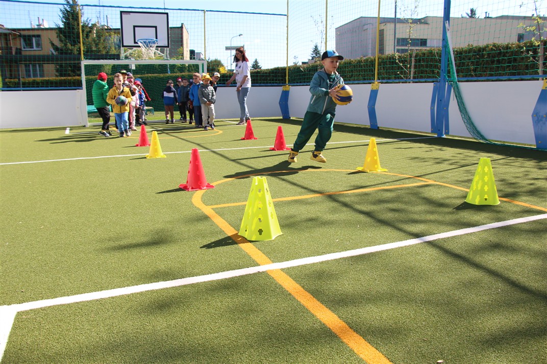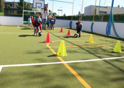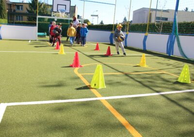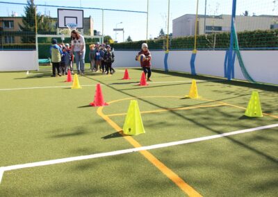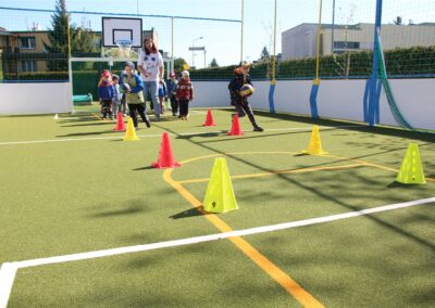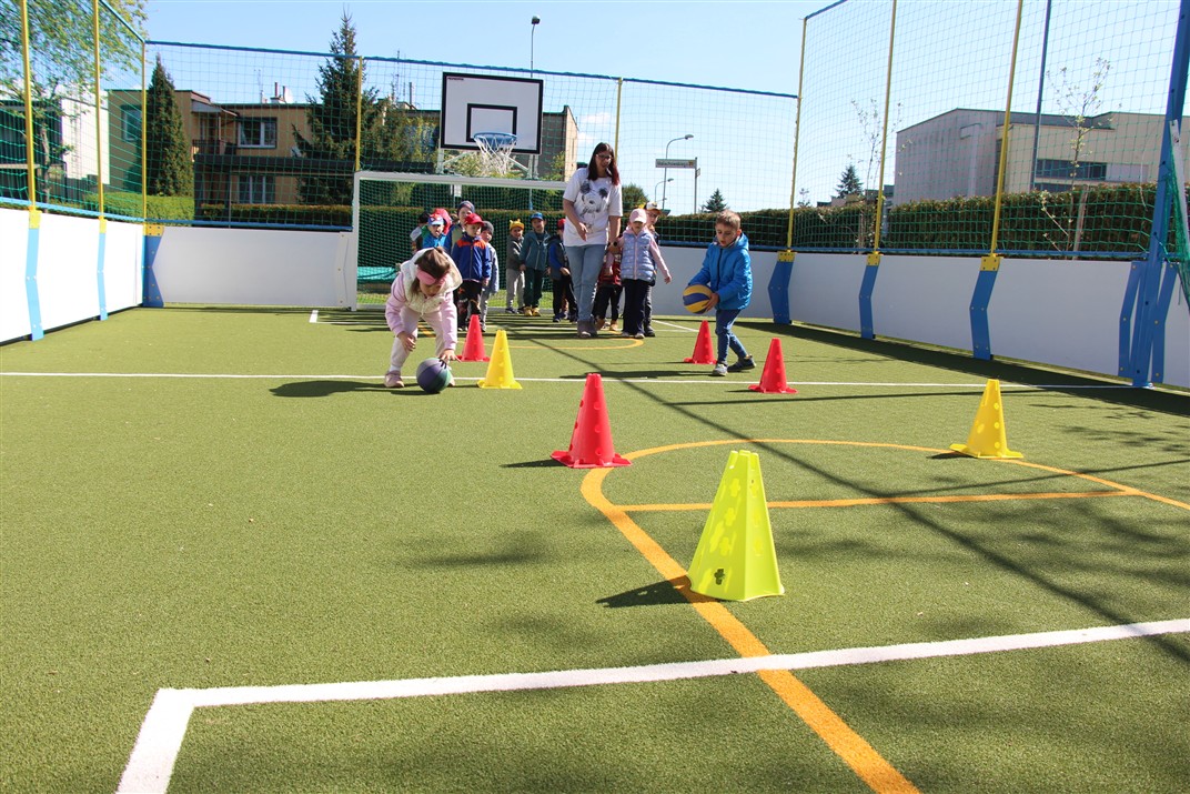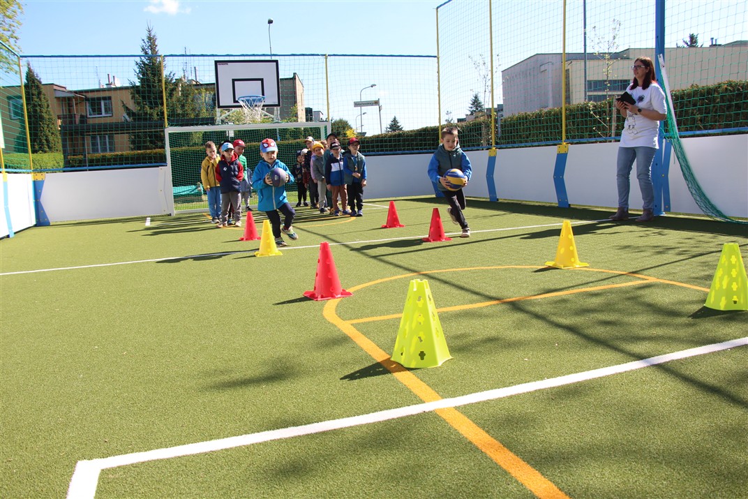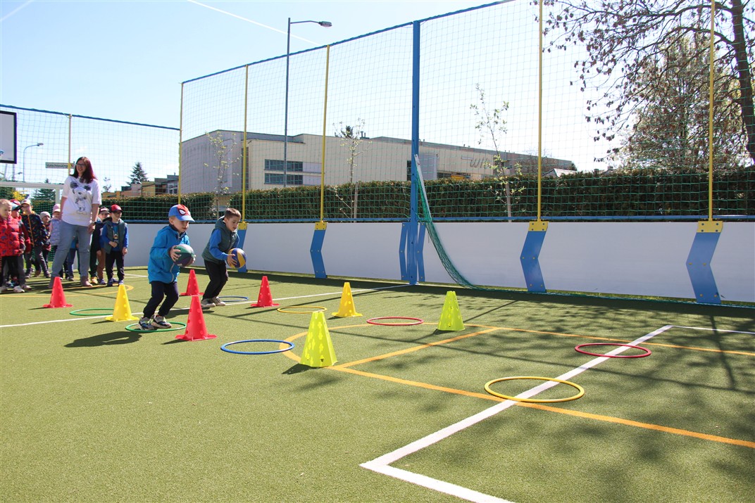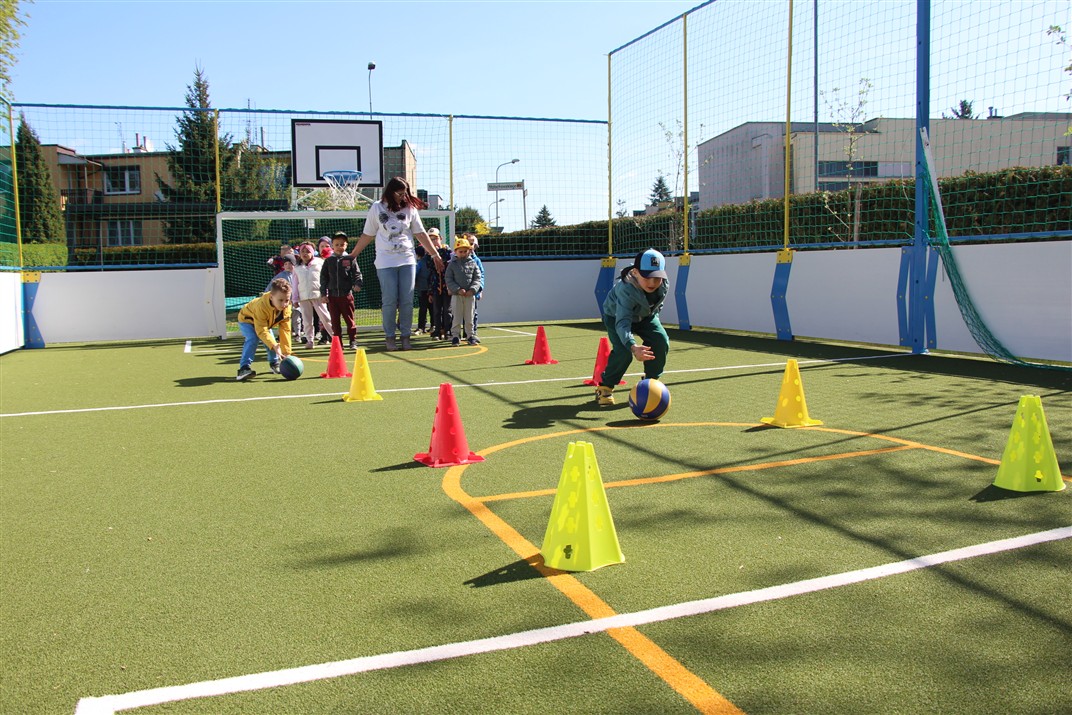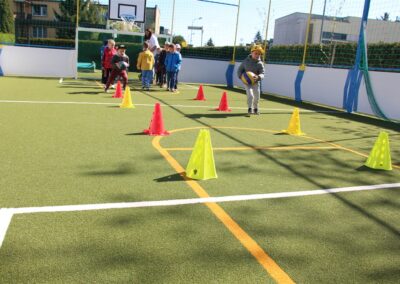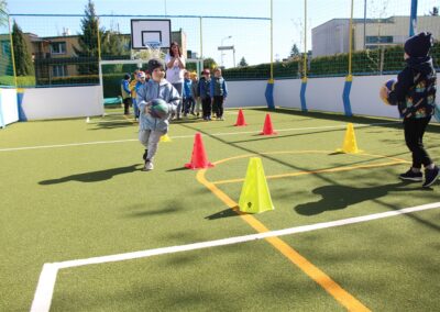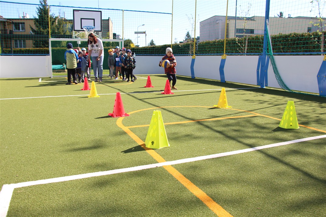 W piątek odbyło się kolejne kółko zainteresowań w grupie Motyli. Tym razem korzystając z ładnej pogody wybraliśmy się na nasze przedszkolne boisko. Zajęcia rozpoczęliśmy od rozgrzewki. Następnie dzieci doskonaliły umiejętność współpracy i współzawodnictwa podczas drużynowych zadań na torze przeszkód z piłką. Na zakończenie uczyliśmy się strzelać do bramki