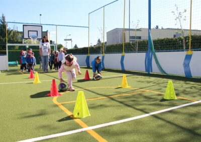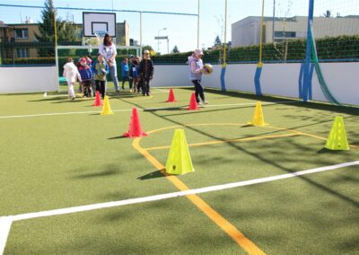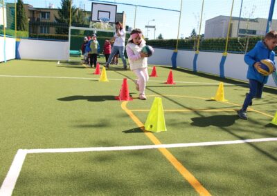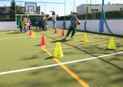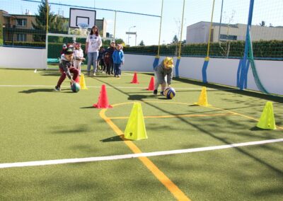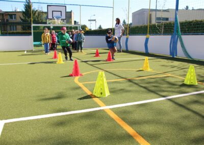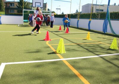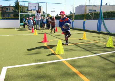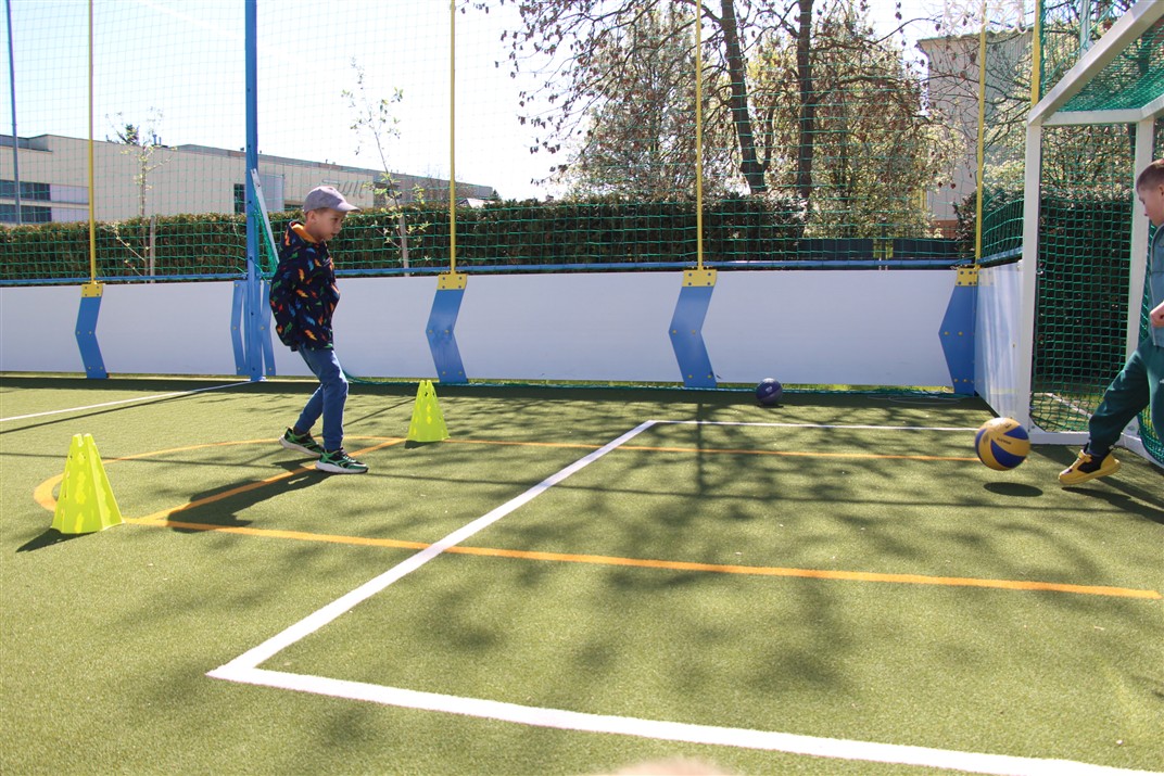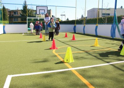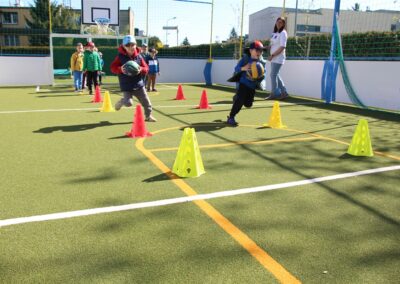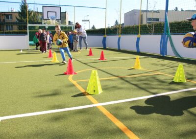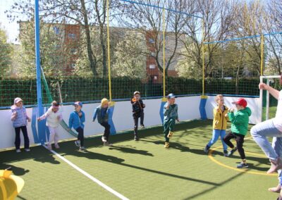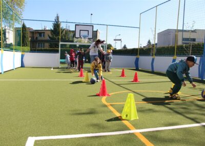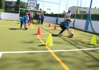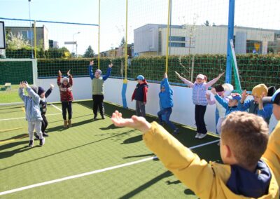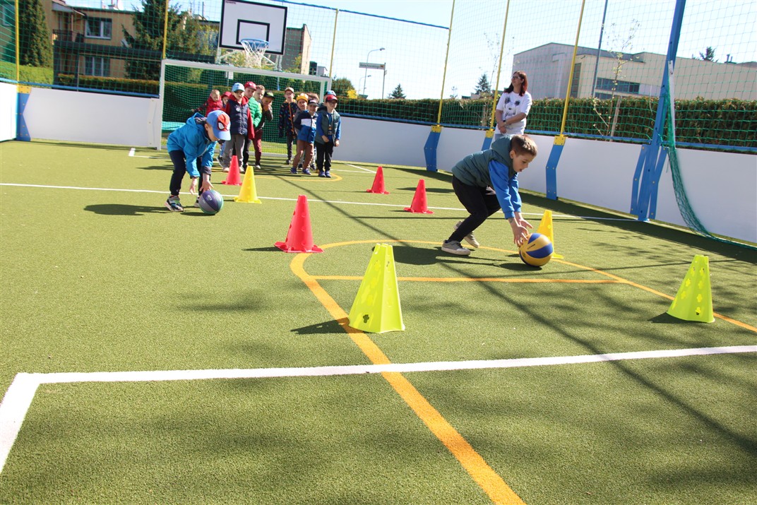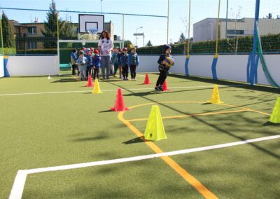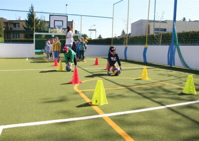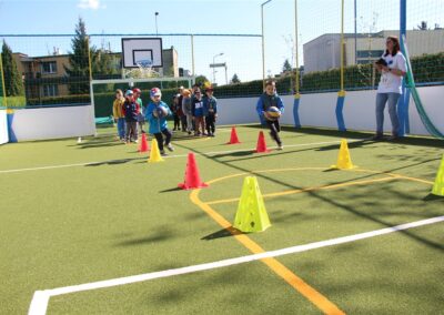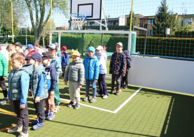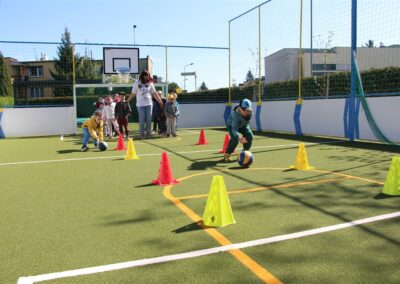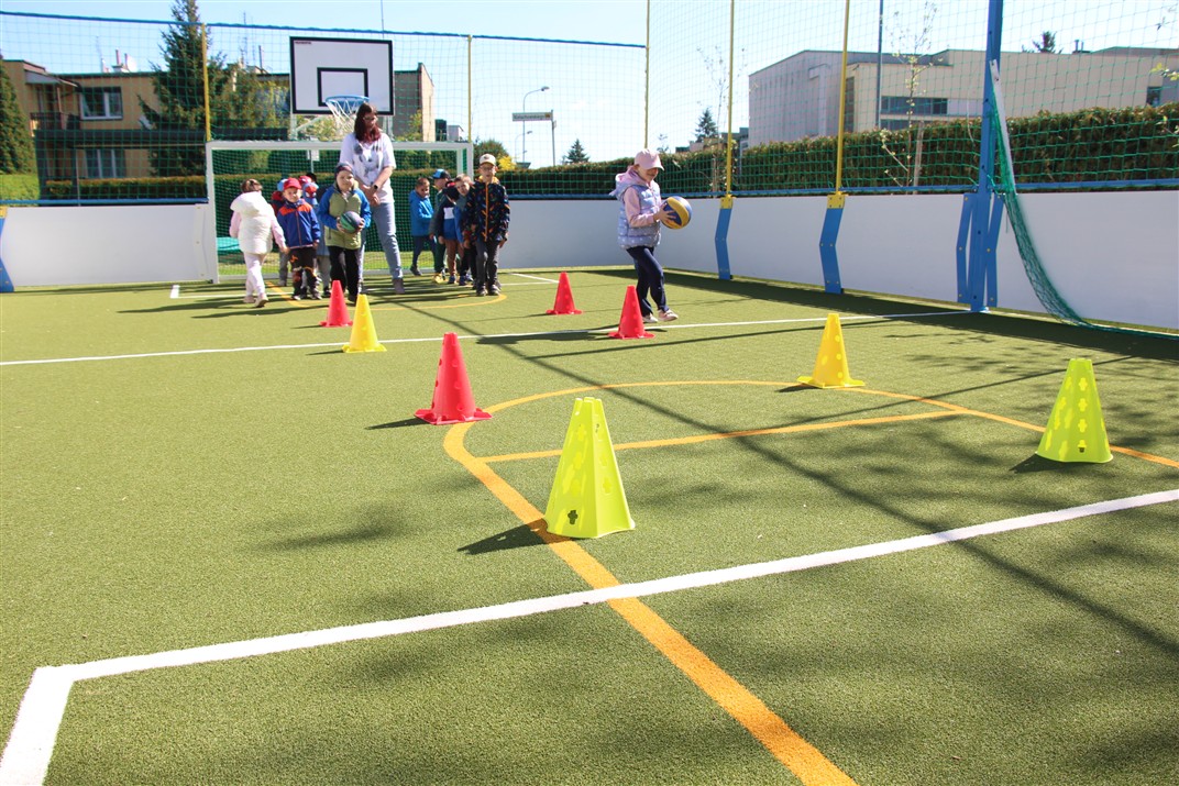 W piątek odbyło się kolejne kółko zainteresowań w grupie Motyli. Tym razem korzystając z ładnej pogody wybraliśmy się na nasze przedszkolne boisko. Zajęcia rozpoczęliśmy od rozgrzewki. Następnie dzieci doskonaliły umiejętność współpracy i współzawodnictwa podczas drużynowych zadań na torze przeszkód z piłką. Na zakończenie uczyliśmy się strzelać do bramki